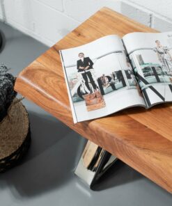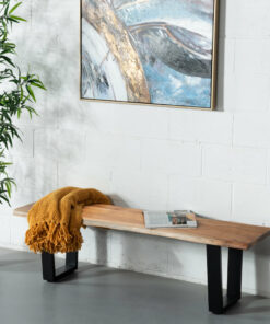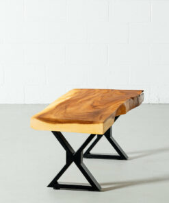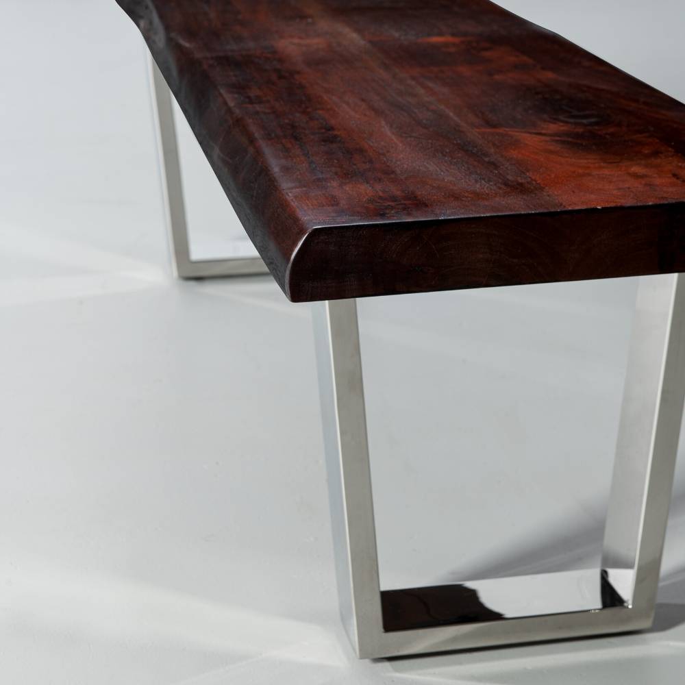 Please note that each and every acacia live edge bench is unique with its markings such as crevasses, grooves, and knots as well as grains, textures and other natural imperfections which make it a one-of-a-kind piece of modern art. The colours of the finish may also vary from table to table due to the fact that the tonality of acacia slab varies and that each table is handcrafted.