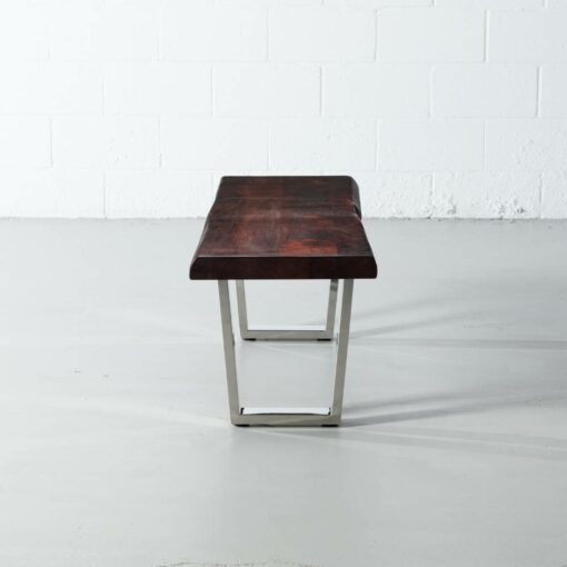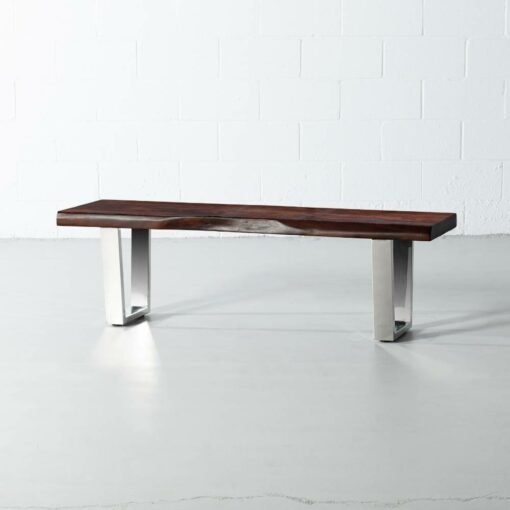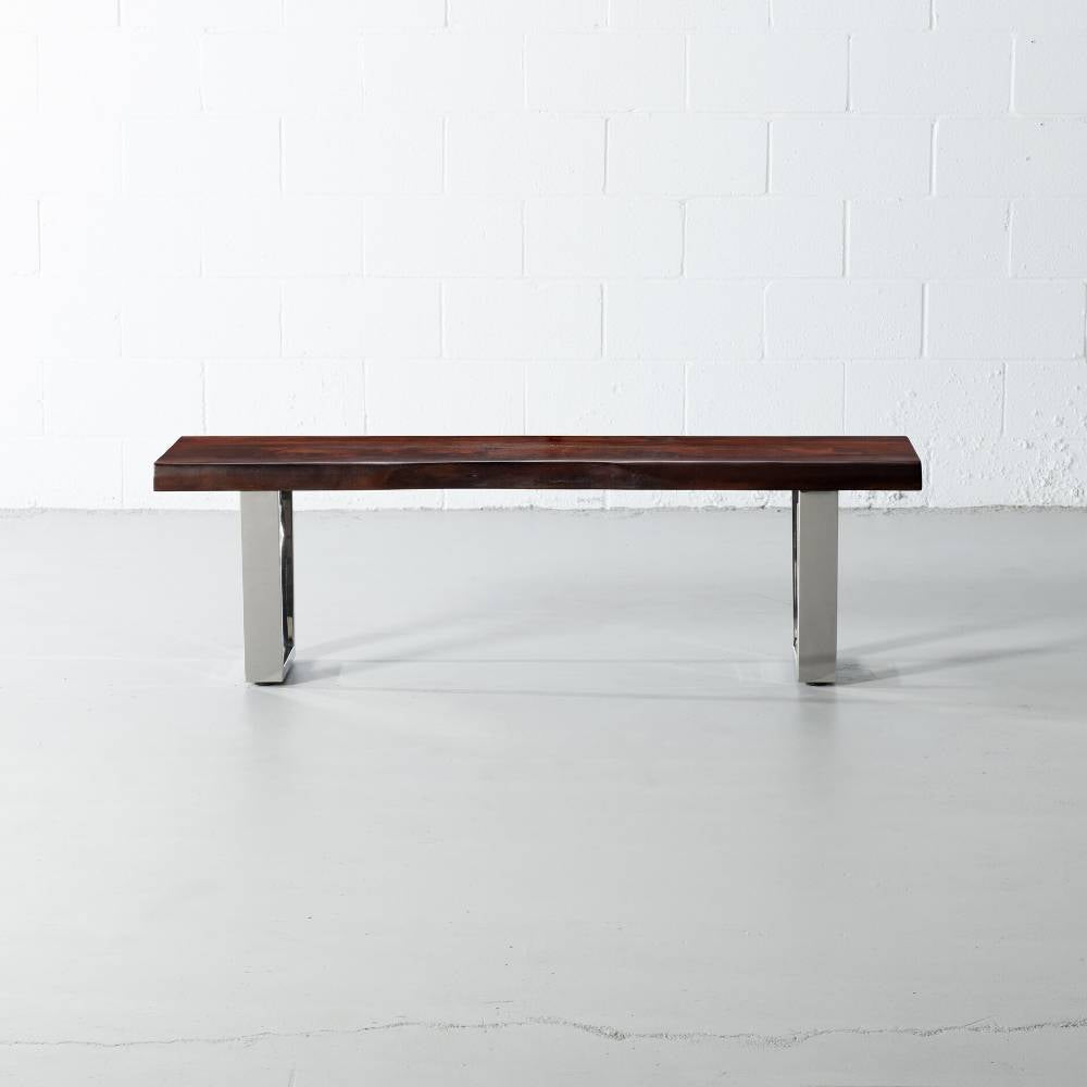 The Boston acacia live edge bench comes in a honey walnut finish, paired with our industrial stainless steel U shaped legs with a mirror like finish. Handcrafted from solid acacia wood, Cole brings a modern rustic look to any space as a wooden bench in the dining room, hallway, bedroom or even used as a narrow coffee table in the living room. Cole will bring natural vibrance to your living space for years to come.