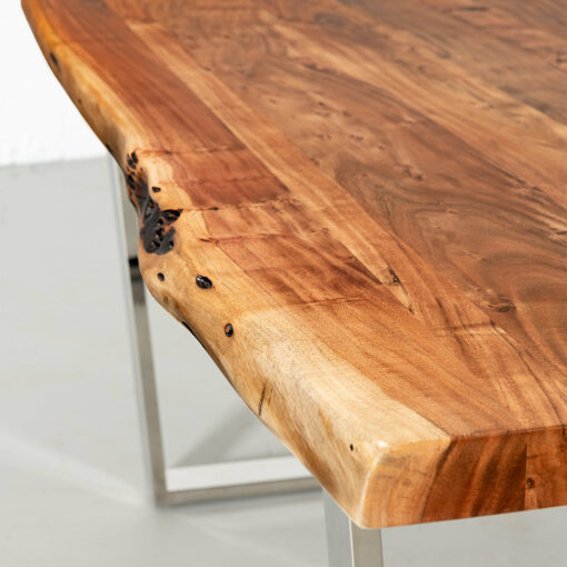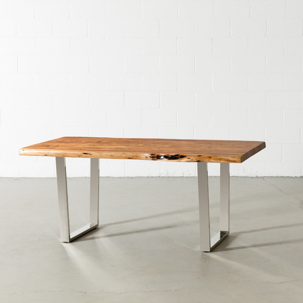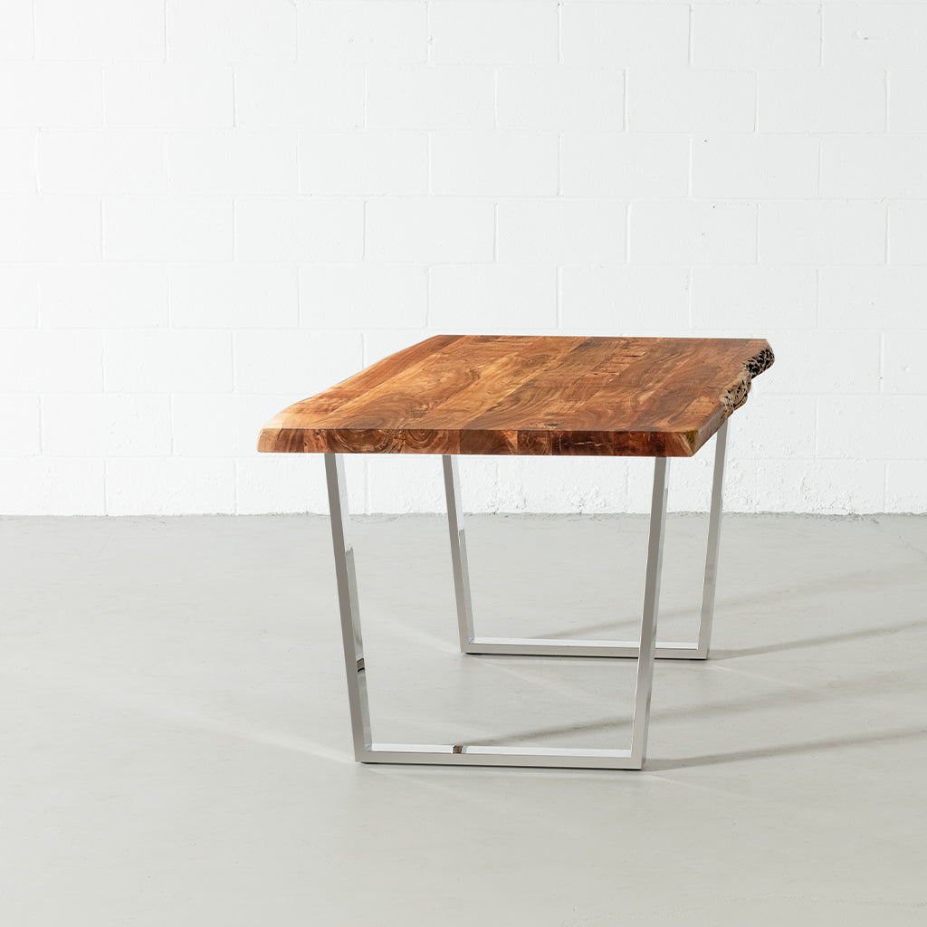 Acacia Live Edge Wood Table with Chrome U Legs/Natural Color