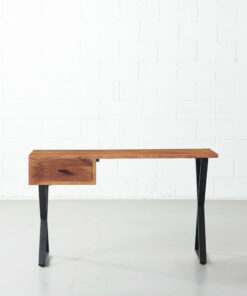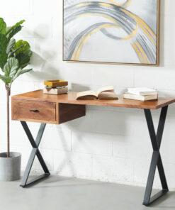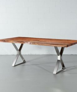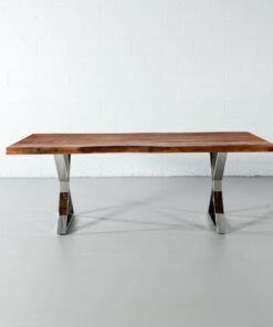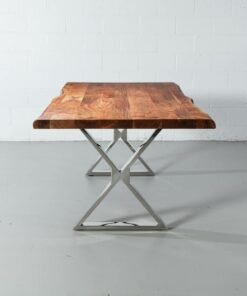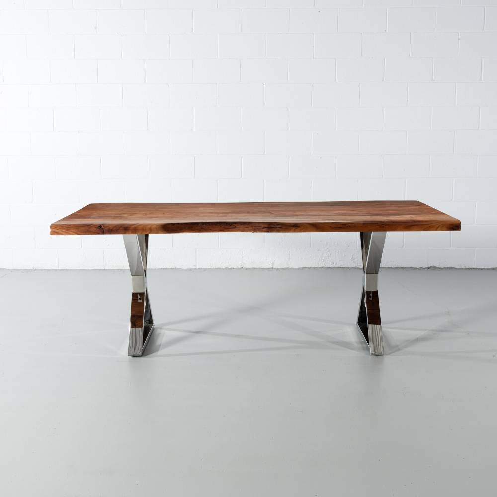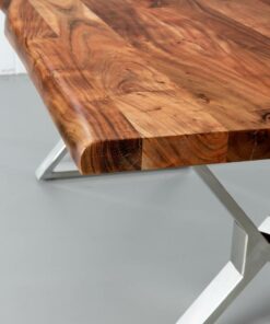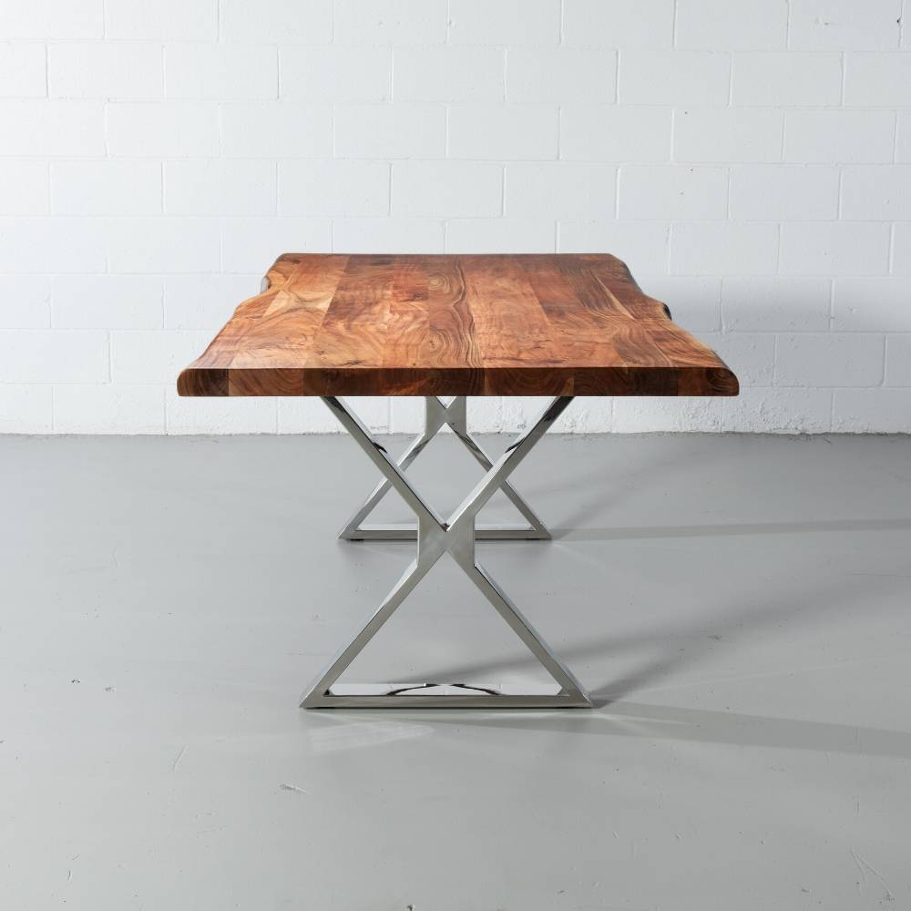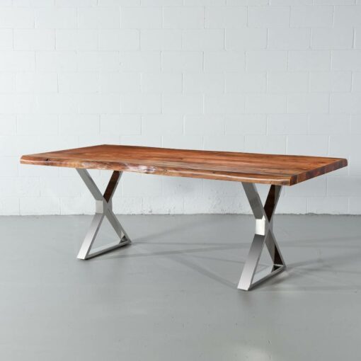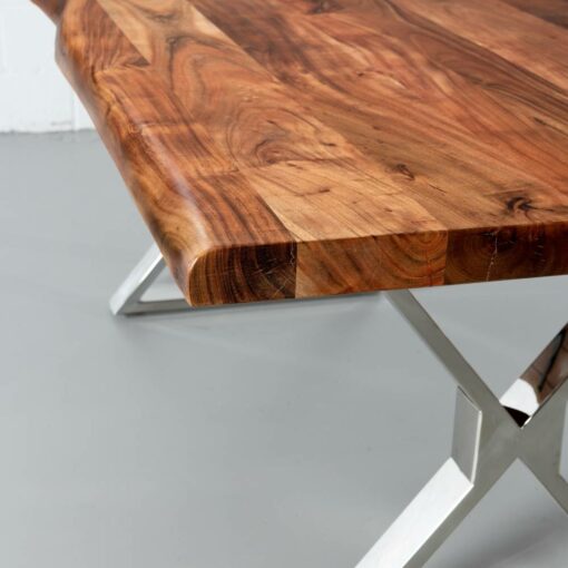 Acacia Live Edge Wood Table with Chrome X Legs/Natural Color