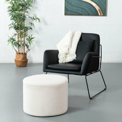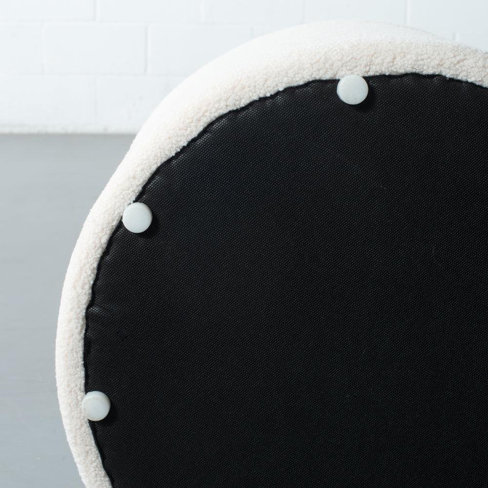 The BACIO ottoman is the newest must-have for any home. Its soft boucle circular body will add a luxurious feeling to any room. Add to your living room or bedroom to make a stylish statement.