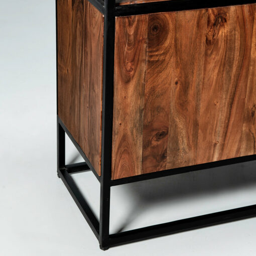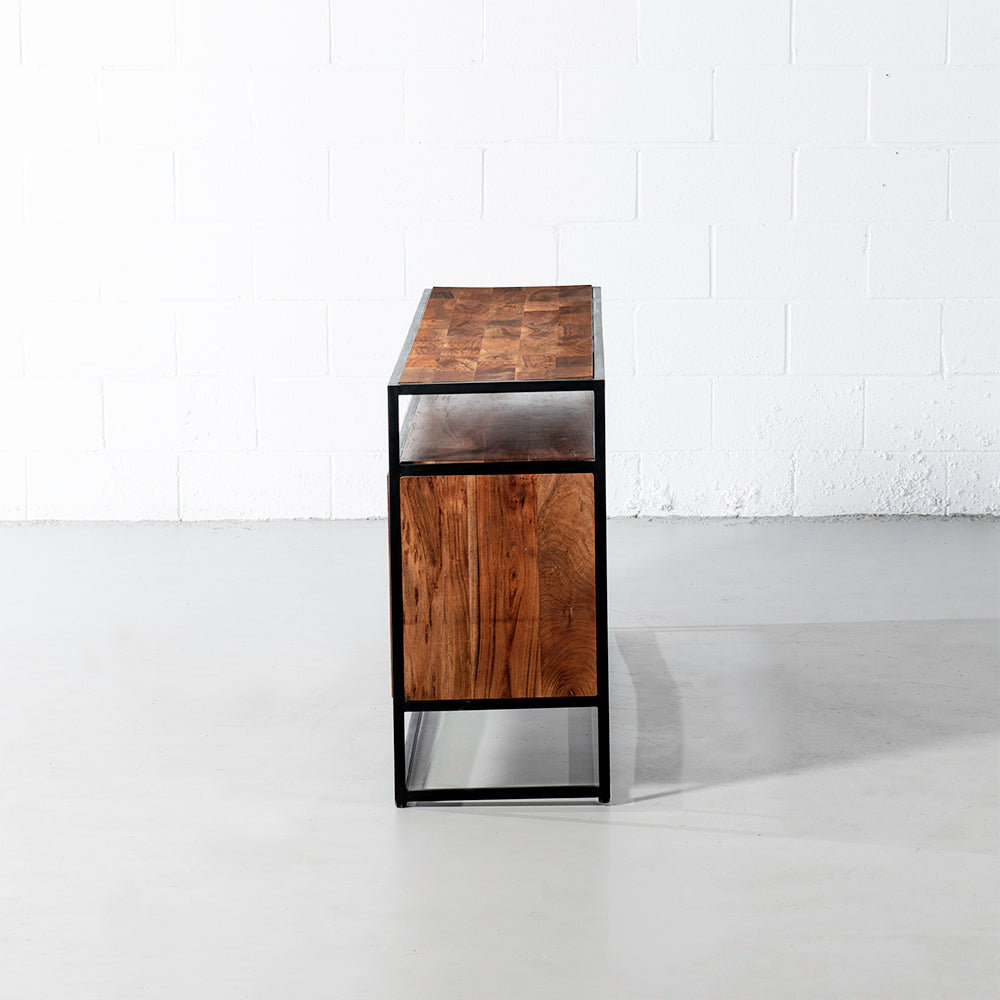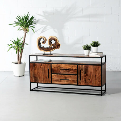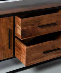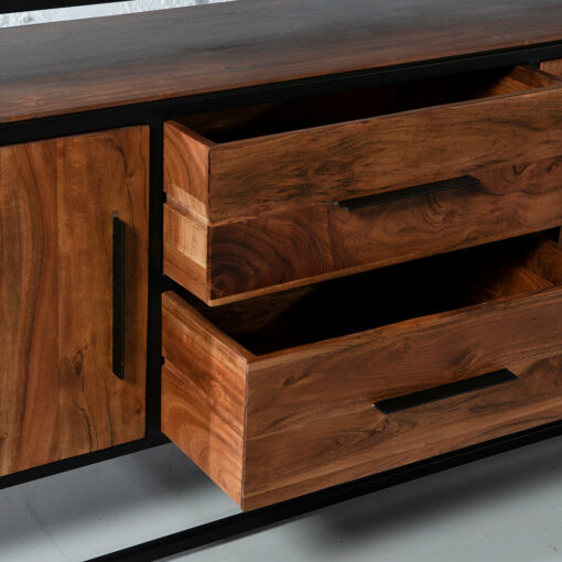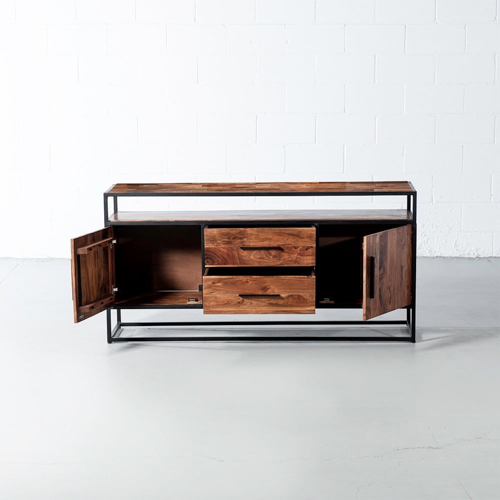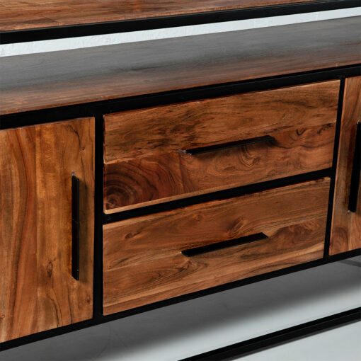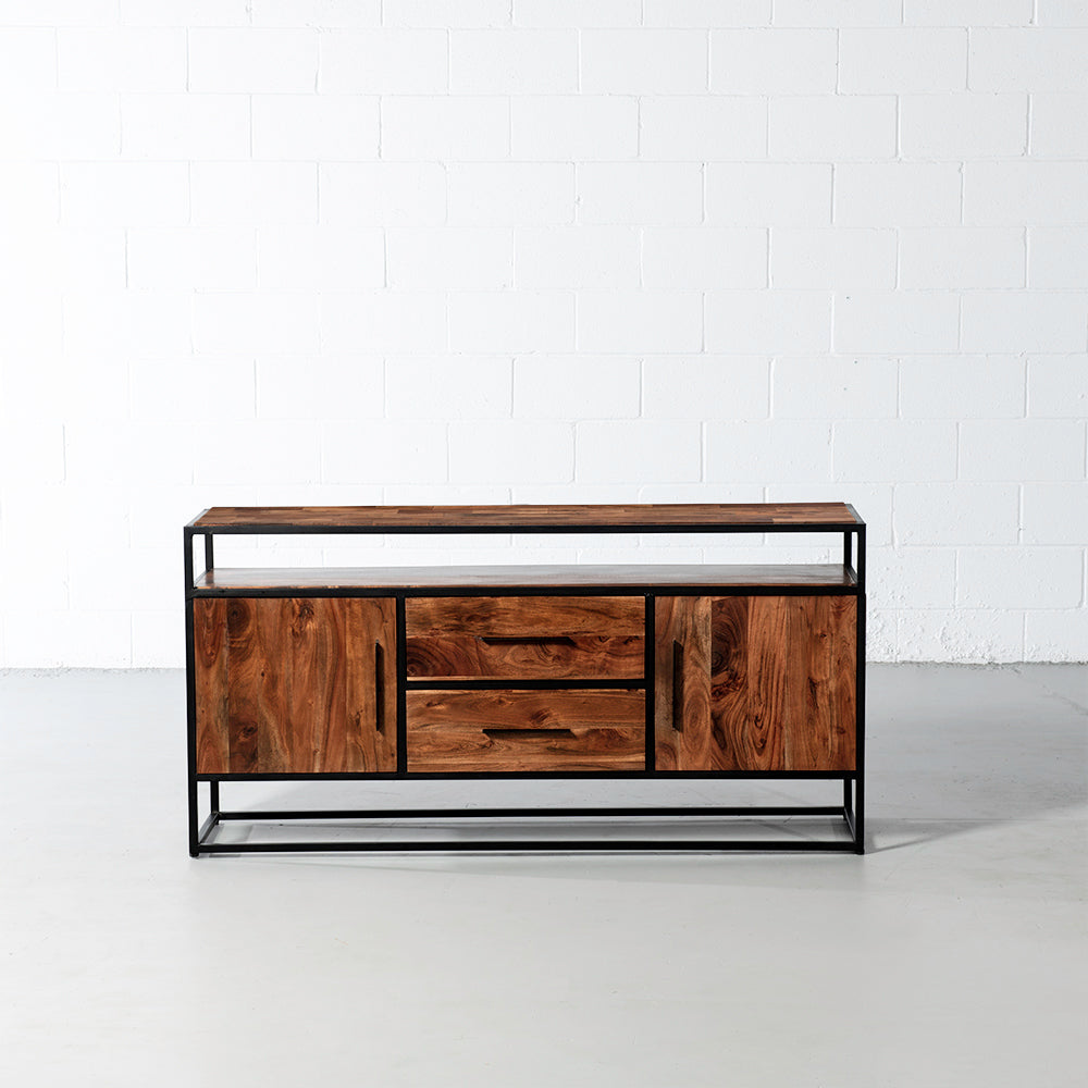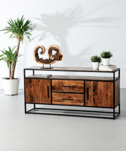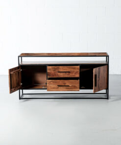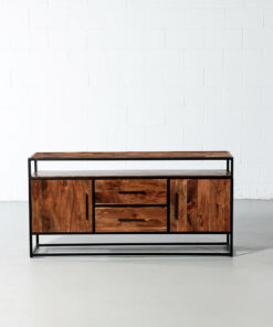 The Lima Sideboard combines natural rustic charm with industrial modern finesse. You won’t have to worry about storage with its 2-door cabinets, 2 drawers and two wide open shelves. The top shelf is a great place to show off your favourite art pieces, photo frames, records, books and your most loved accent pieces. Create a cohesive look with the popular LIMA media unit.