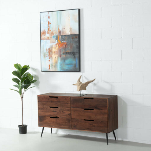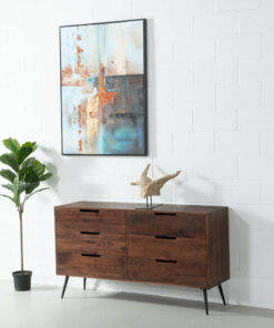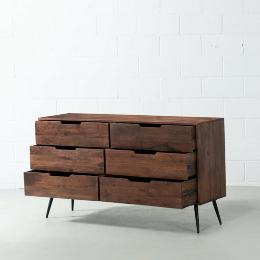Madrid, easy on the eyes, and even easier on the decor! The solid acacia wood dresser has been hand-polished by skilled artisans in a gorgeous walnut stain that amplifies the natural beauty of the wood grain.