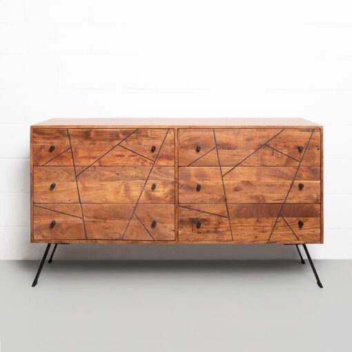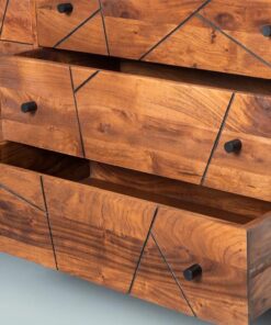 Add some Danish modern flare to any room with the Palma Dresser. This handcrafted piece has dashing geometric inlays, fused into the FSC-certified acacia wood, standing on angled iron legs. The natural beauty of the wood has been amplified by hand polishing by skilled artisans. The Palma Mid Century dresser can make any home feel like a staycation. Get the complete look with the Palma – Mid Century Night Table and the Palma – Mid Century Sideboard.
