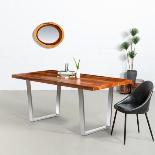 Straight Cut Acacia Wood Table with Chrome U Legs/Natural Colour