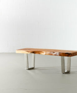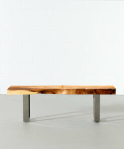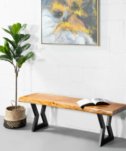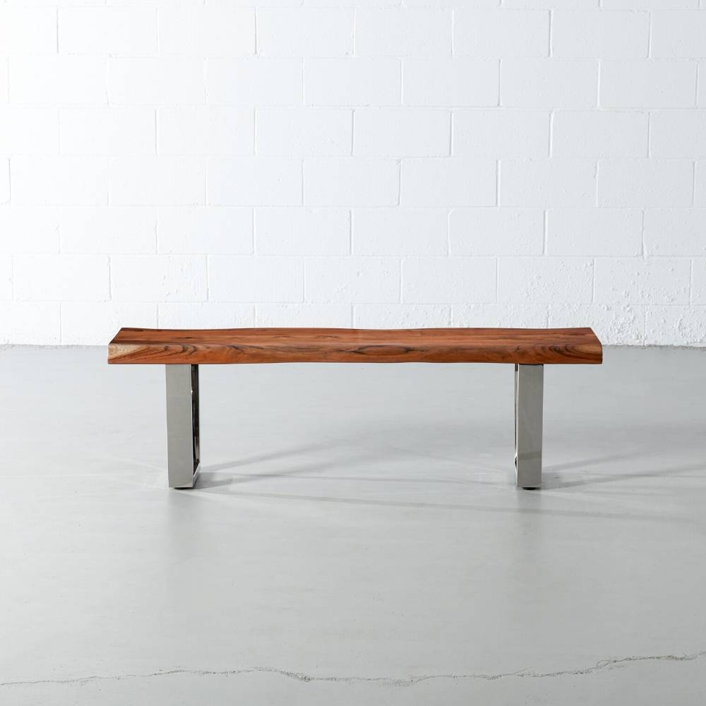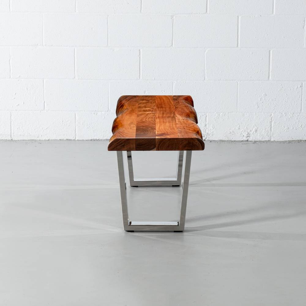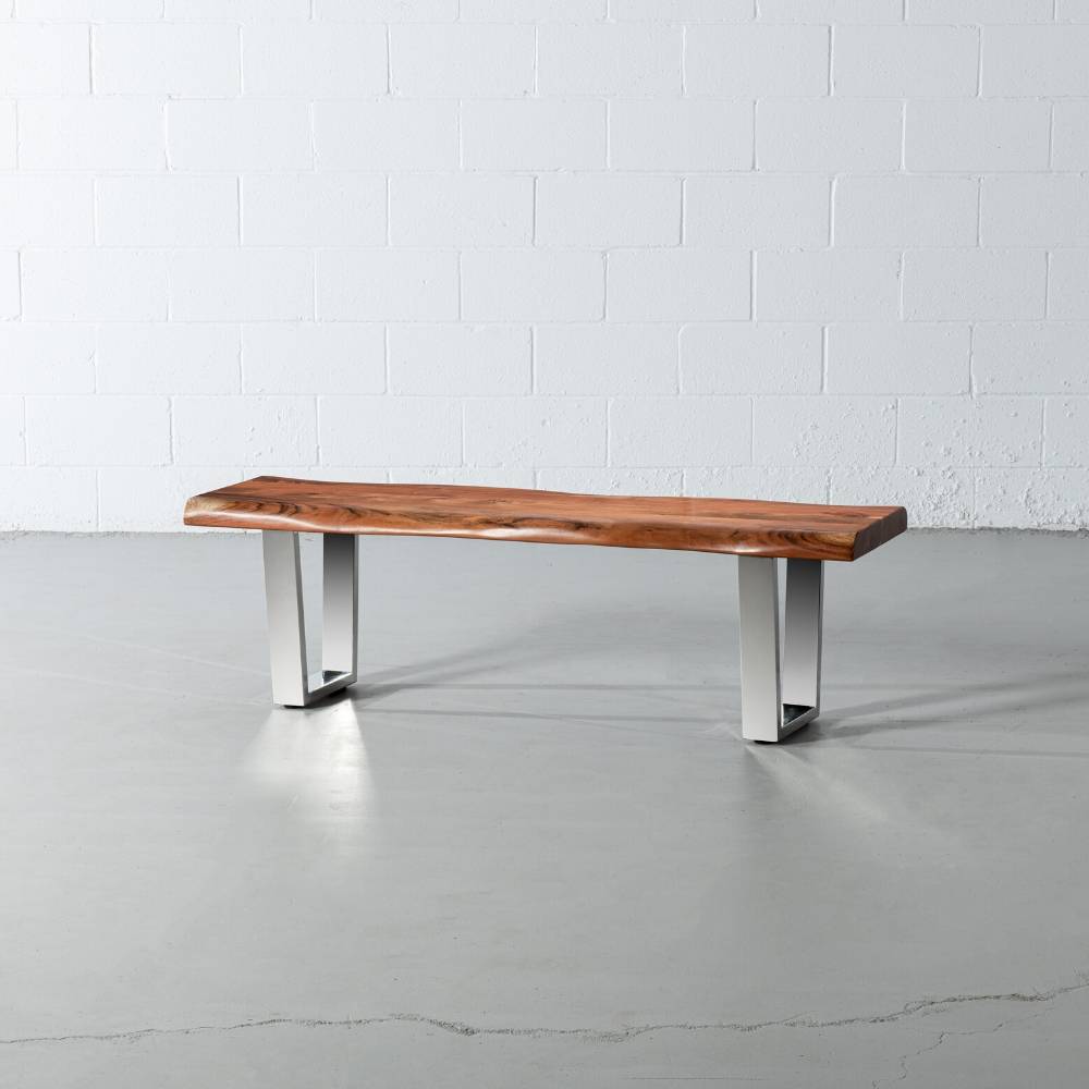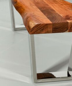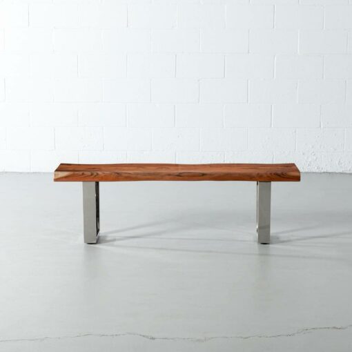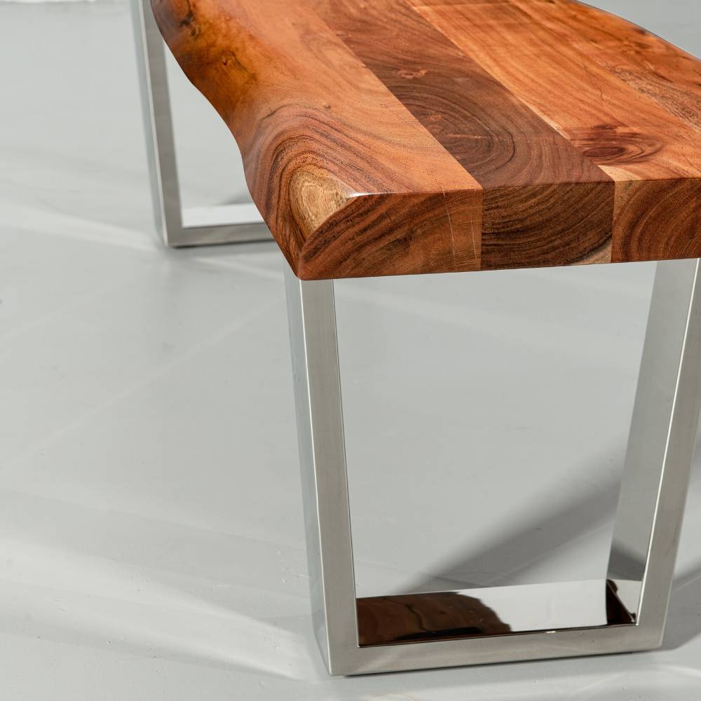Acacia Live Edge Wood Bench with Chrome U-shaped Legs/Natural Finish