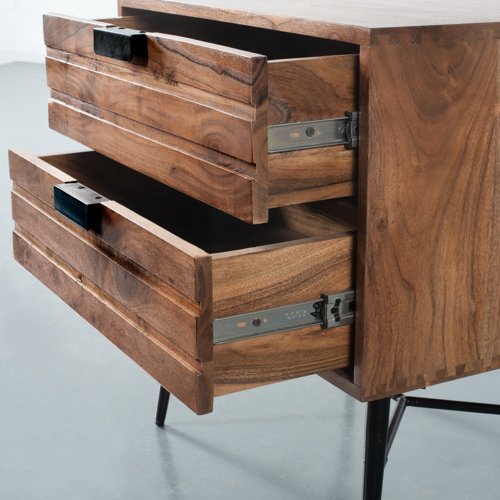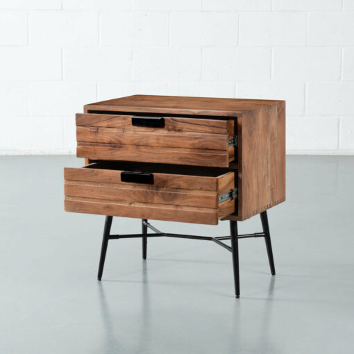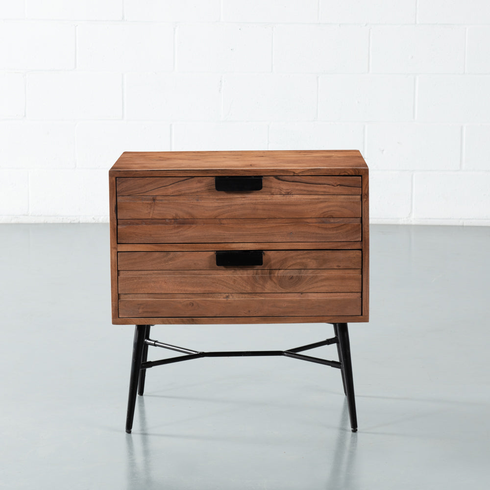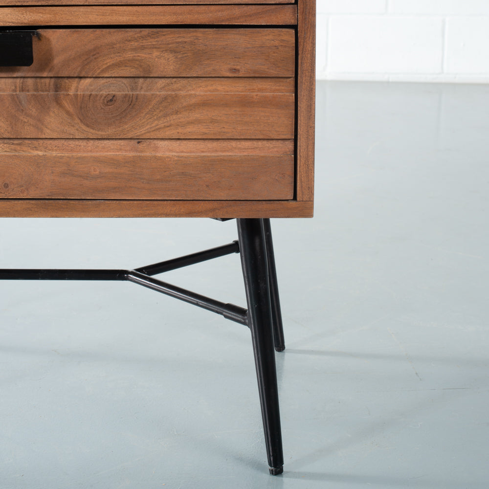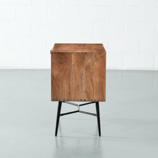 A mid-century modern dream, Aria features 100% solid acacia wood in a beautiful light brown finish. Its industrial black metal legs are the ultimate companion. The Aria End Table is the perfect complement to our entire Aria Collection; design your entire bedroom with Aria pieces.