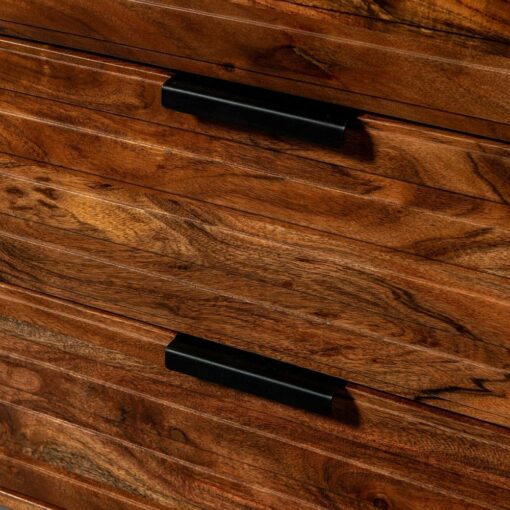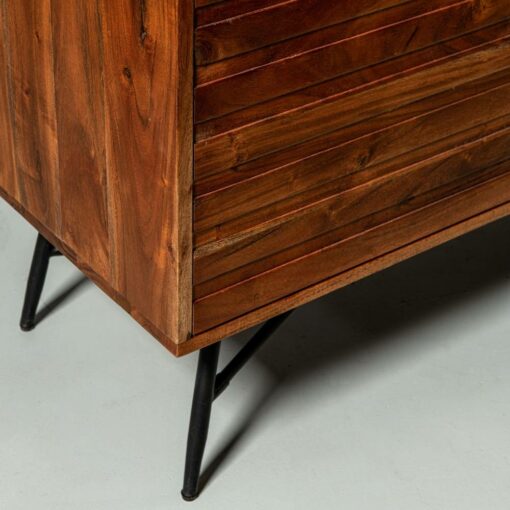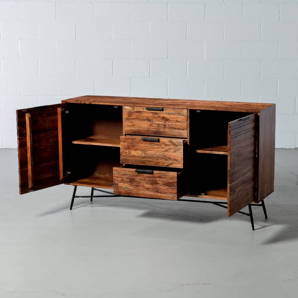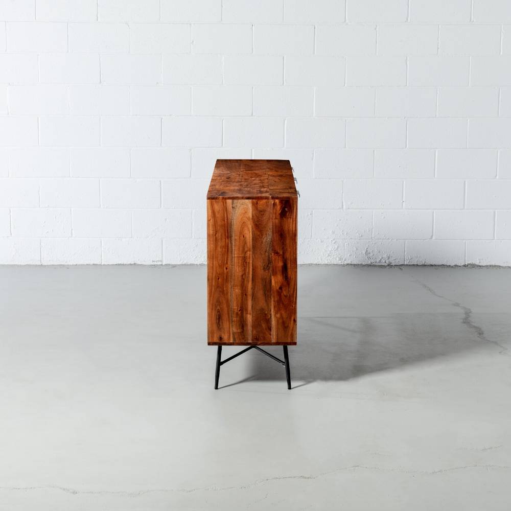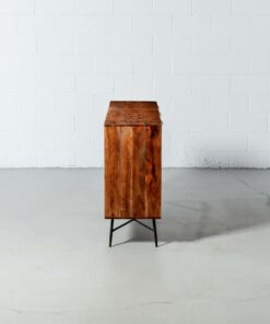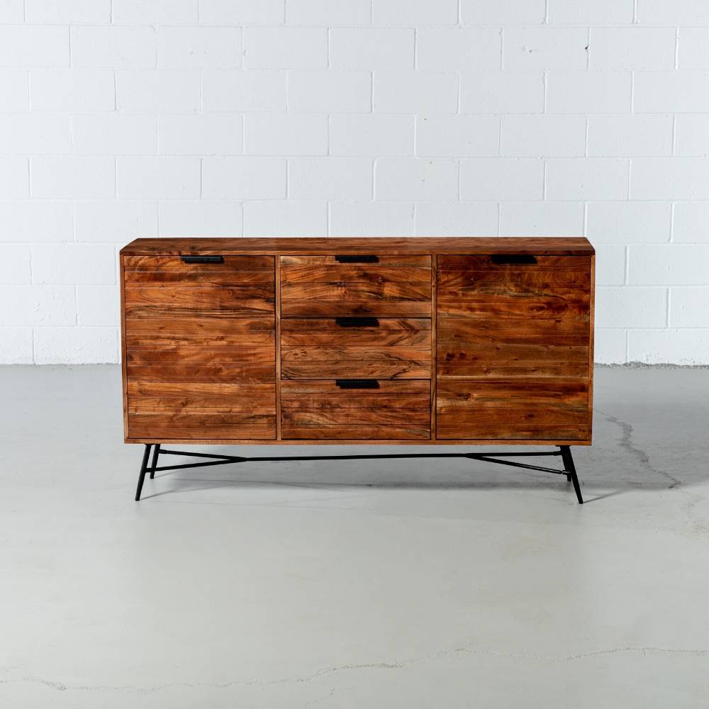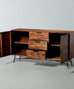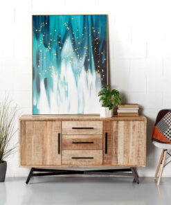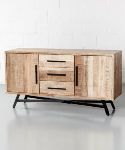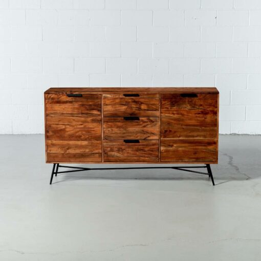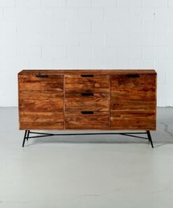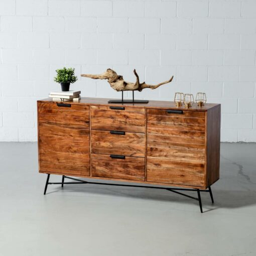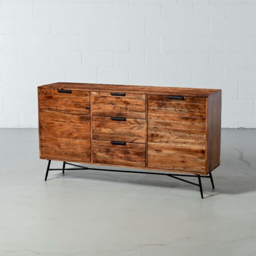 The Aria Sideboard has the look you want and the storage you need. Its solid acacia wood frame is supported by a sleek stylish industrial metal leg design that will wow your guests. There’s no shortage on storage with its 3 drawers and 2 cupboards. Display your favourite home accents on the top surface. Complete the look with the matching Aria media unit.