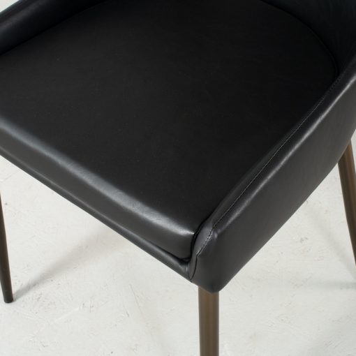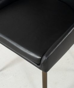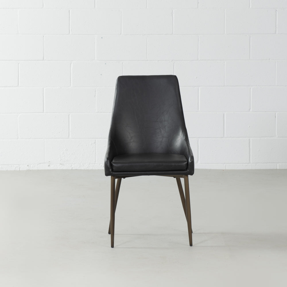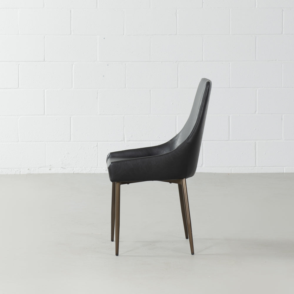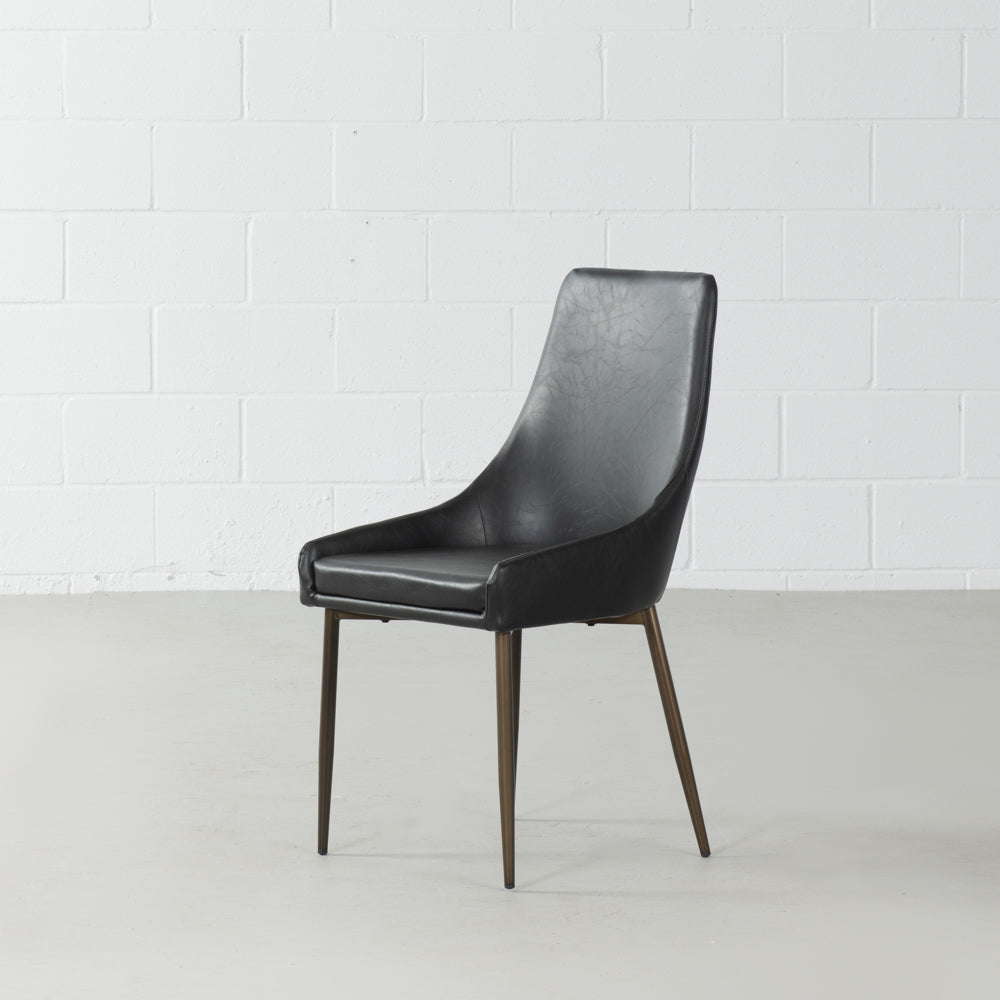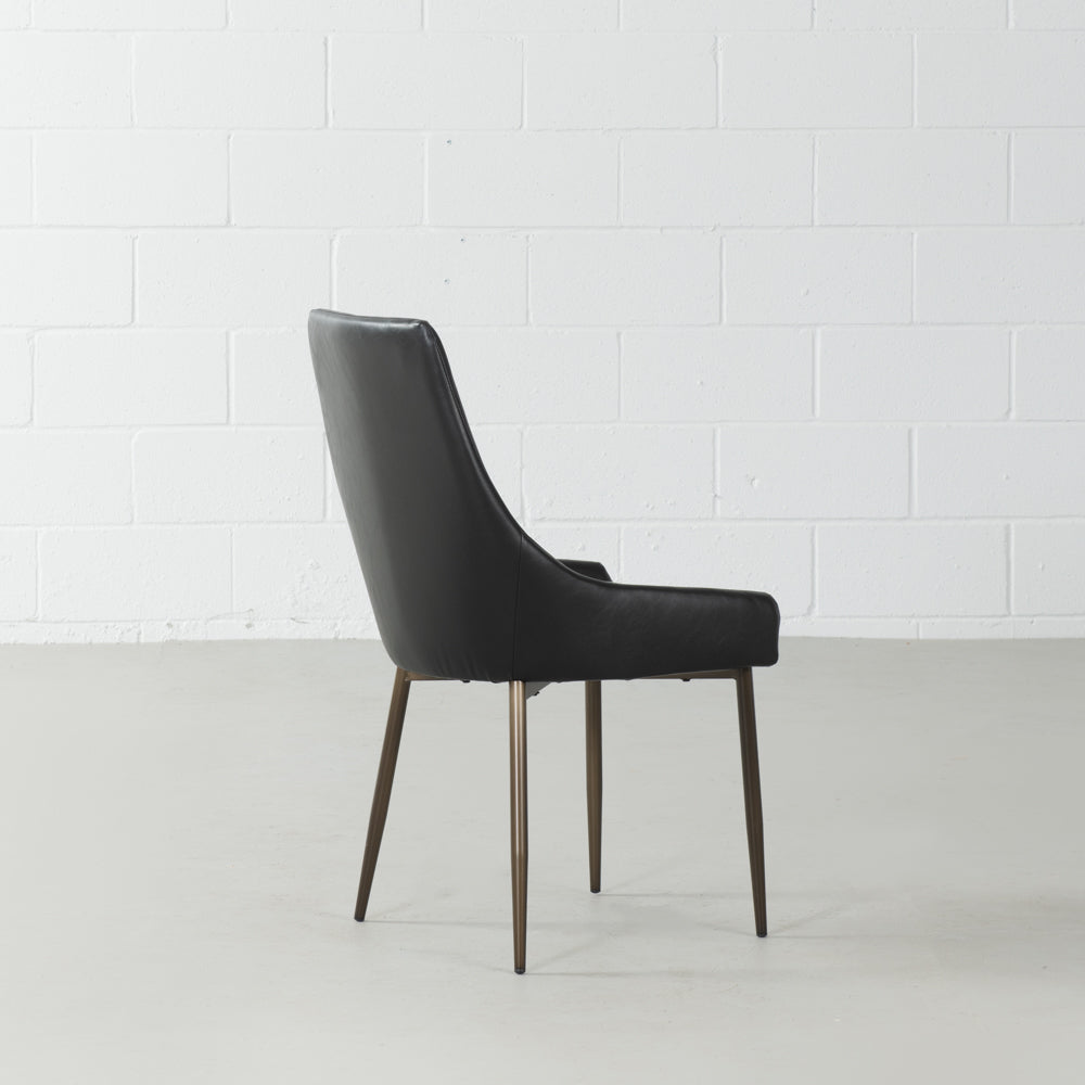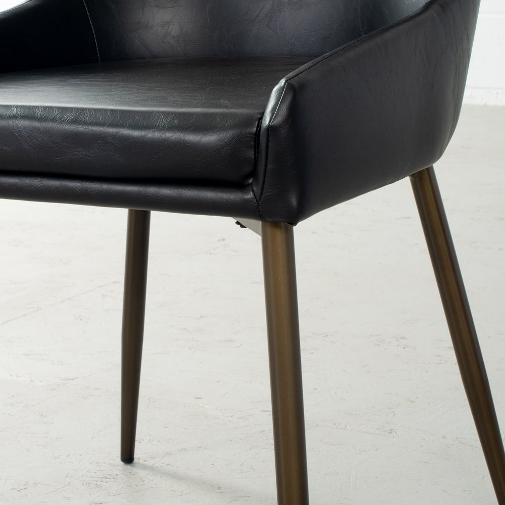 This Paisley is anything but boring. Our Paisley dining chair is crafted with solid, heavy-duty brass metal and vintage black vegan leather. The contemporary brass legs add a stylish touch that ups the glam factor in any interior.