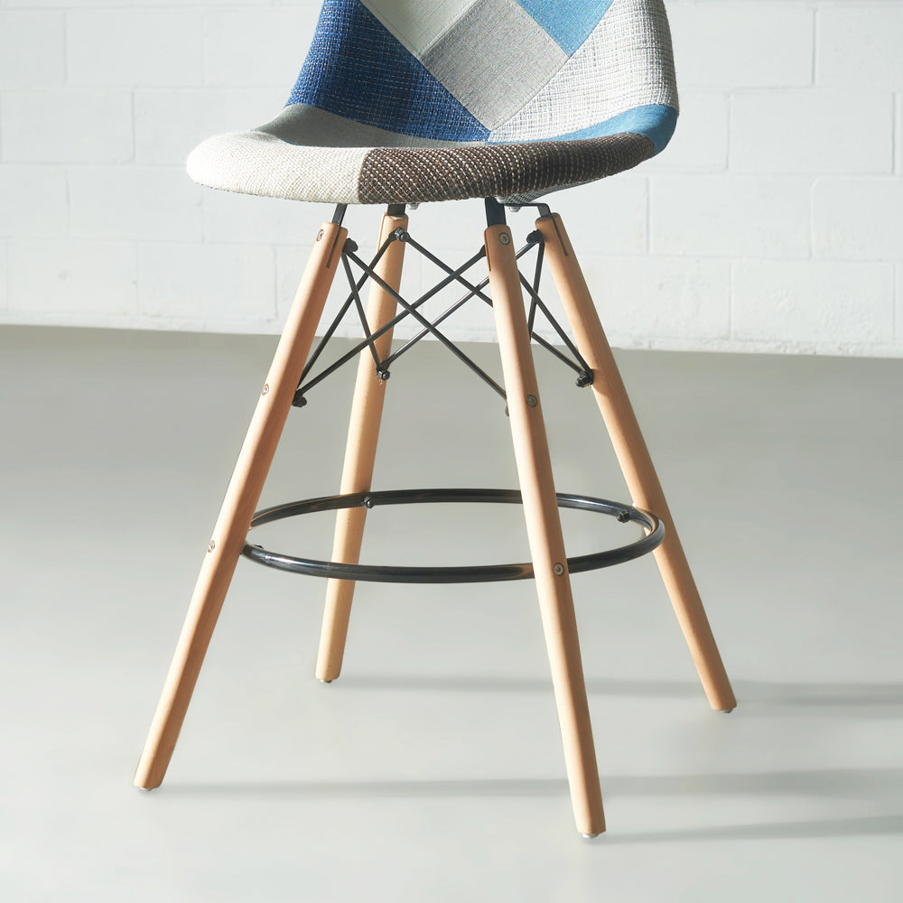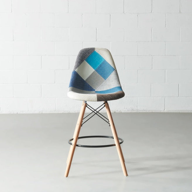 The Eames style padded chair is inspired by the beautiful and timeless designs of Charles and Ray Eames, known for creating the famous DSW chair. Eiffel features a padded seat, upholstered in beautiful patchwork. Its beech wooden legs with plastic floor protections and its newly improved hardware inserts, make it quick and easy to assemble.