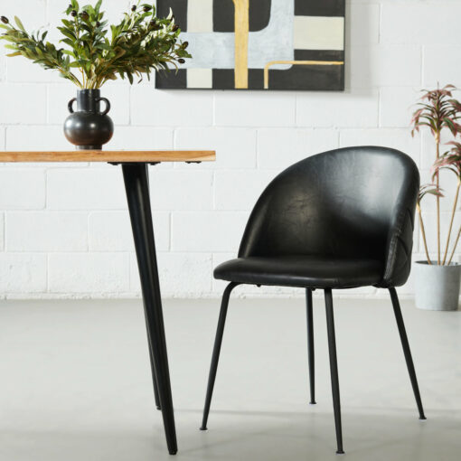 Introducing our stunning BRANSON dining chair, where graceful lines meet timeless elegance. Designed for utmost comfort, its ergonomically curved shape guarantees a delightful seating experience. Wrapped in luxurious vegan leather, it combines sustainability with refined style. With its captivating curved silhouette, this dining chair embodies both sophistication and comfort. Elevate your dining space with a chair that captures timeless elegance and unparalleled coziness.