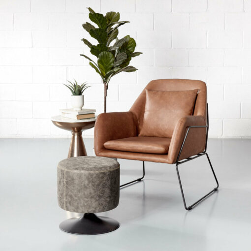 Invented by Turkish carpet weavers who used bales of cotton to create the first ottomans. Wazo brings you an updated refined version with a high-quality vegan leather drum and black powder-coated metal base.