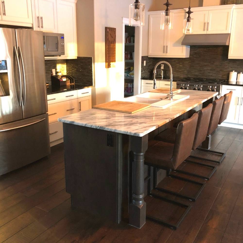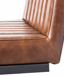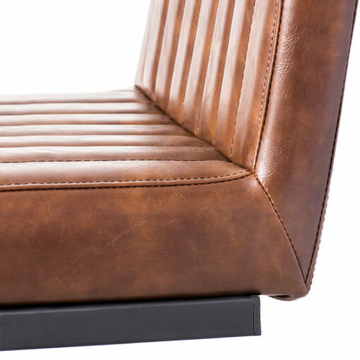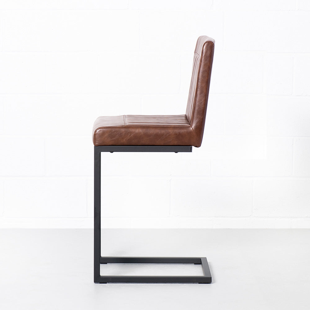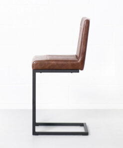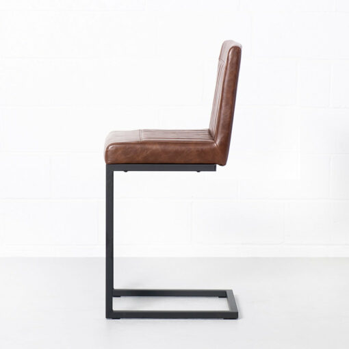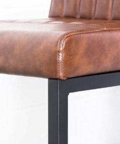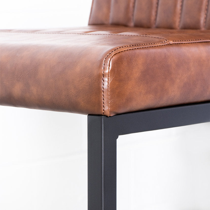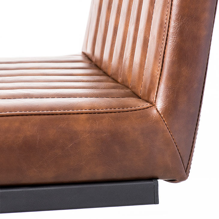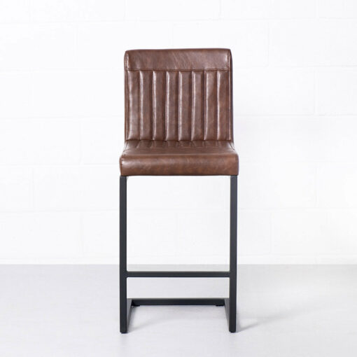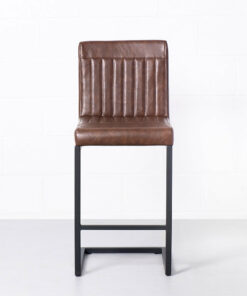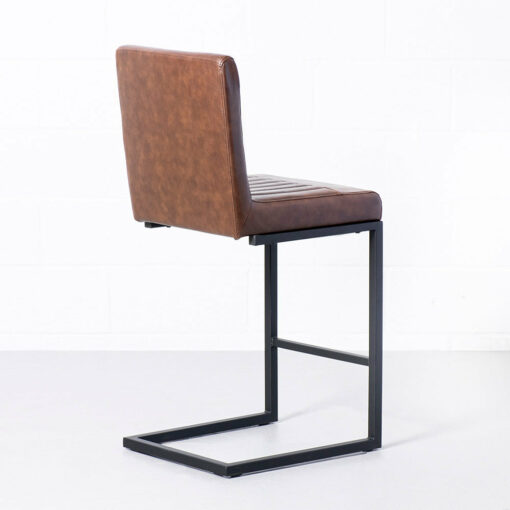 The Cal Counter Stool is crafted with solid, heavy-duty black metal, sleek vintage brown vegan leather and stylish vertical stitching. Perfect for the industrial-chic dining room.
