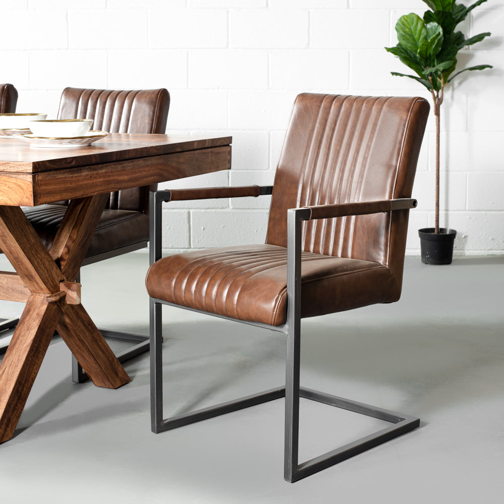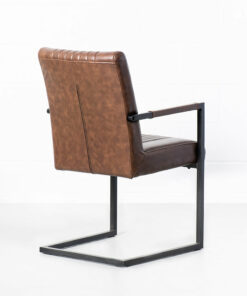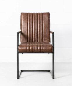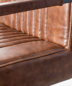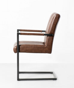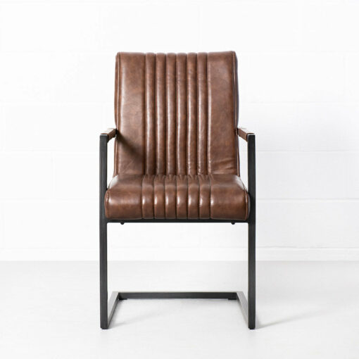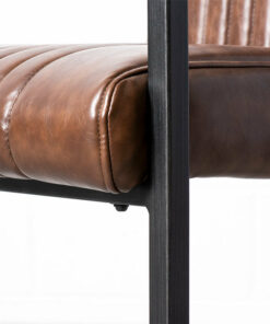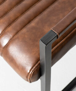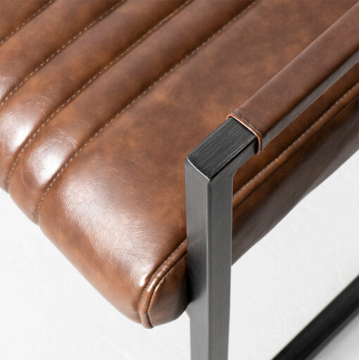 The Caleb armchair is crafted with solid, heavy duty antique brushed metal, sleek vintage brown vegan leather and stylish vertical stitching.