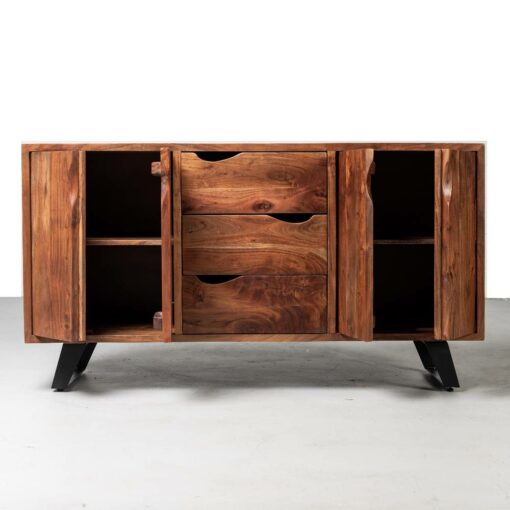 The Arosa Sideboard is a rustic modern dresser that defines what beautiful design should look like. It gives you plenty of storage space with its 3 drawers and 4-door cabinets – more than enough space to keep all of your valuable belongings tucked away.
