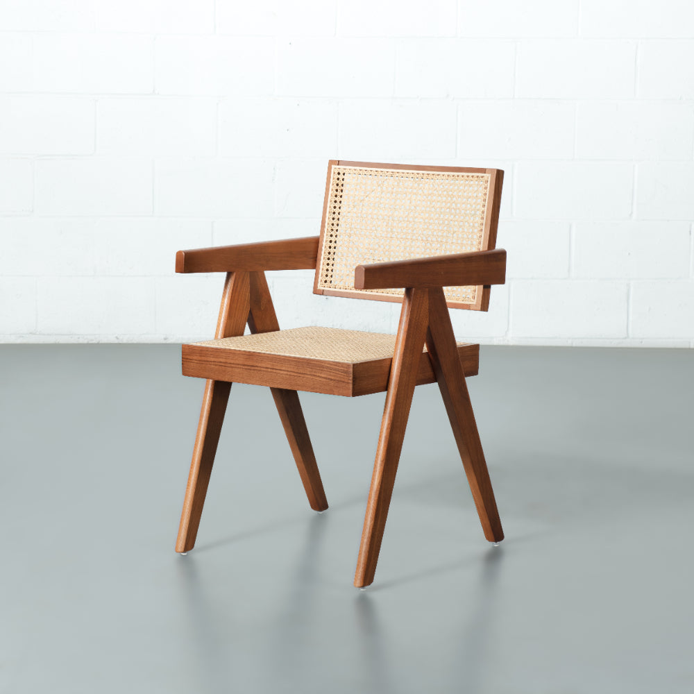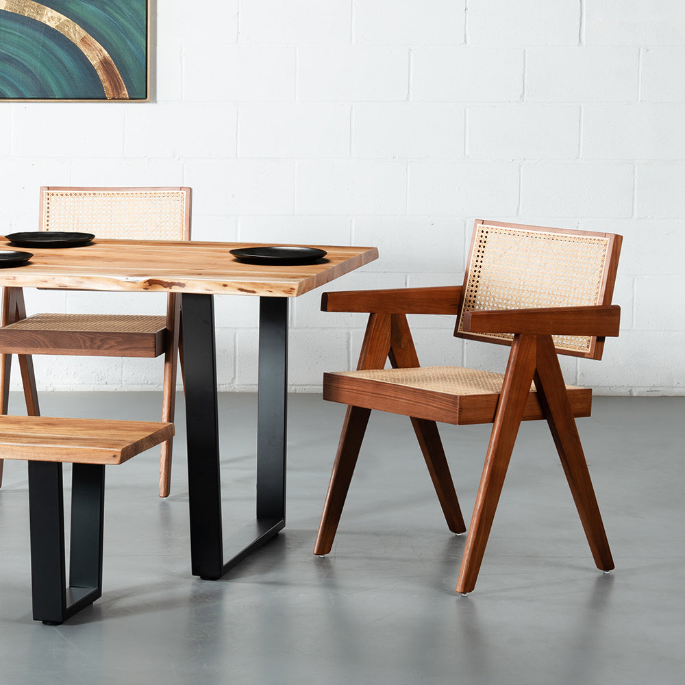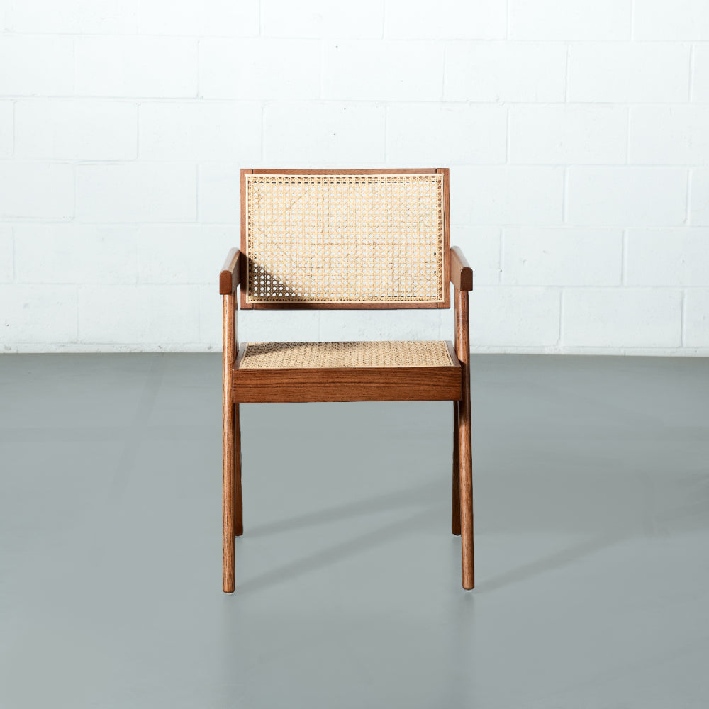 CAPELA brings simplicity and refined sophistication to your dining table. The stylish chair has a classic wooden frame with a woven fisheye pattern cane back. The geometric silhouette creates a timeless piece that will be the envy of all your guests.