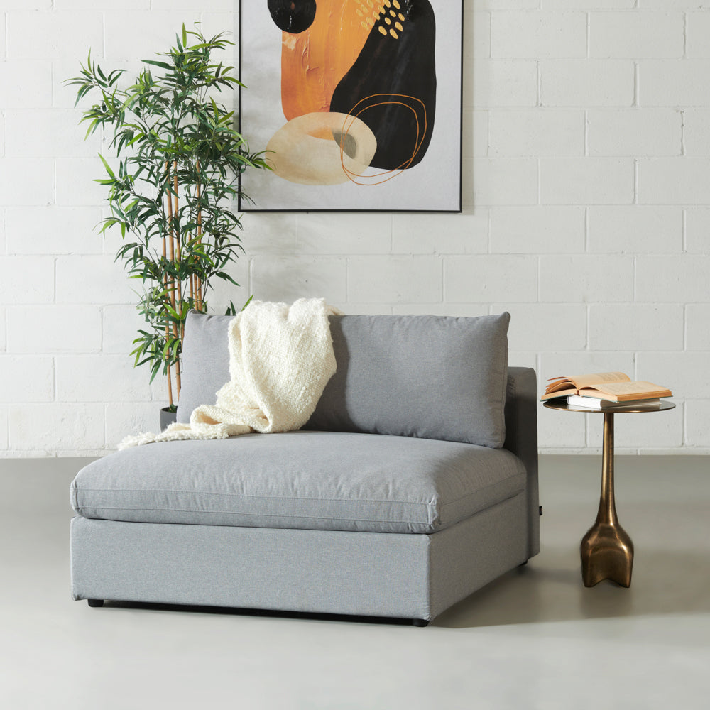 Introducing the COSMIC Chair Module, where comfort meets style effortlessly. Sink into superior comfort with its feather mix polyester fiber stuffing and indulge in the soft, grey fabric cover. Rest easy knowing that the removable cover is water-resistance, providing protection against spills and accidents. Experience ultimate comfort and peace of mind with the Cosmic chair module.