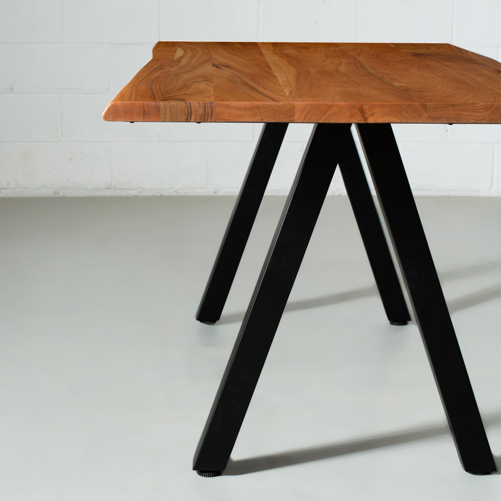 Each solid natural Acacia table slab is truly one of a kind and every bit as unique and beautiful as you are. The colour and character of the wood grain may vary a little, and natural cracks and fissures may develop with changes in humidity and temperature, this is a natural characteristic of solid wood furniture. This means your piece is developing a unique personality and character, and over time it will become a well-loved part of your home and family.