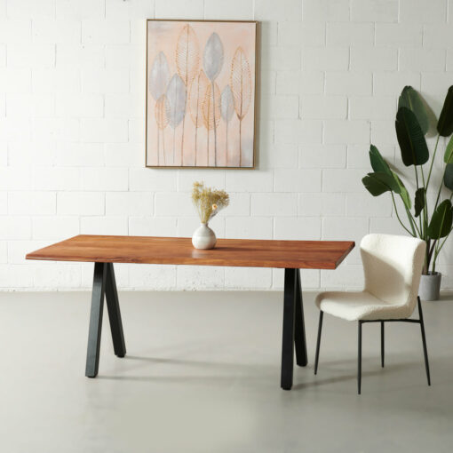 Bring an element of nature into your home with our Acacia dining table. Made from 100% solid acacia wood, each table is completely unique; its markings, grooves, crevasses, and knots; its grains, textures, and natural (perfect, in our opinion) imperfections are all its own. Nobody will have the same table as you, and isn’t that the best part?
