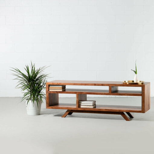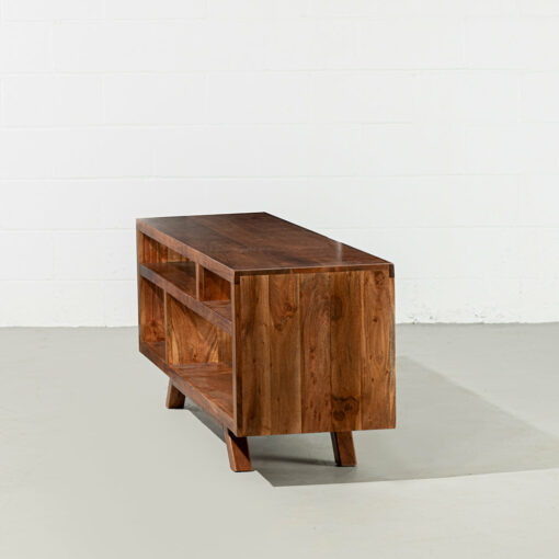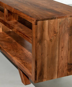 The Dayton Mid-Century Rustic Modern TV Unit is inspired by a modern lifestyle of sophistication. This design sports a natural color finish which provides plenty of charm and character. Open shelves provide an ideal platform for your favorite video game console, cable box or DVD/BLU-RAY player. Let this furniture piece take your living room space to the next level.