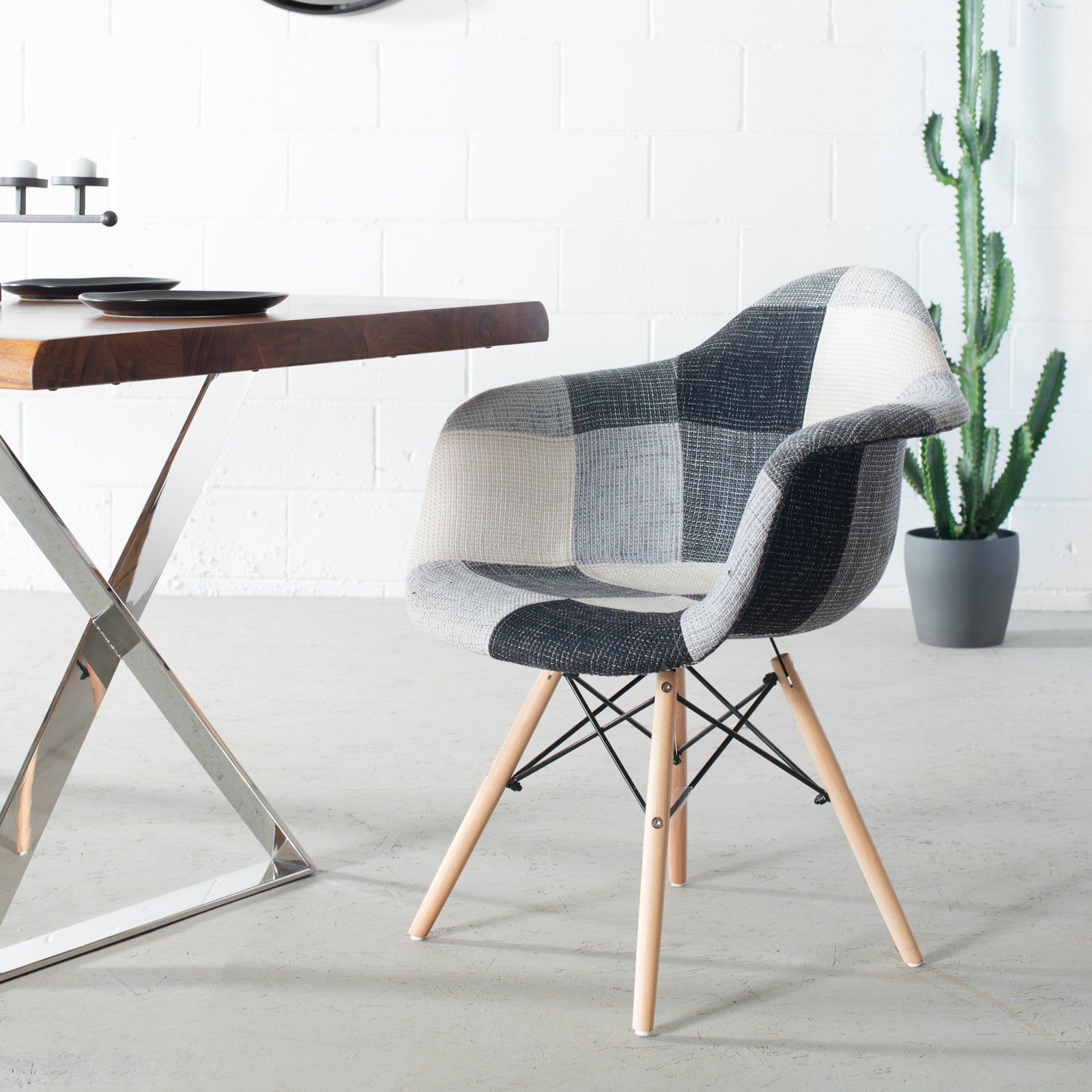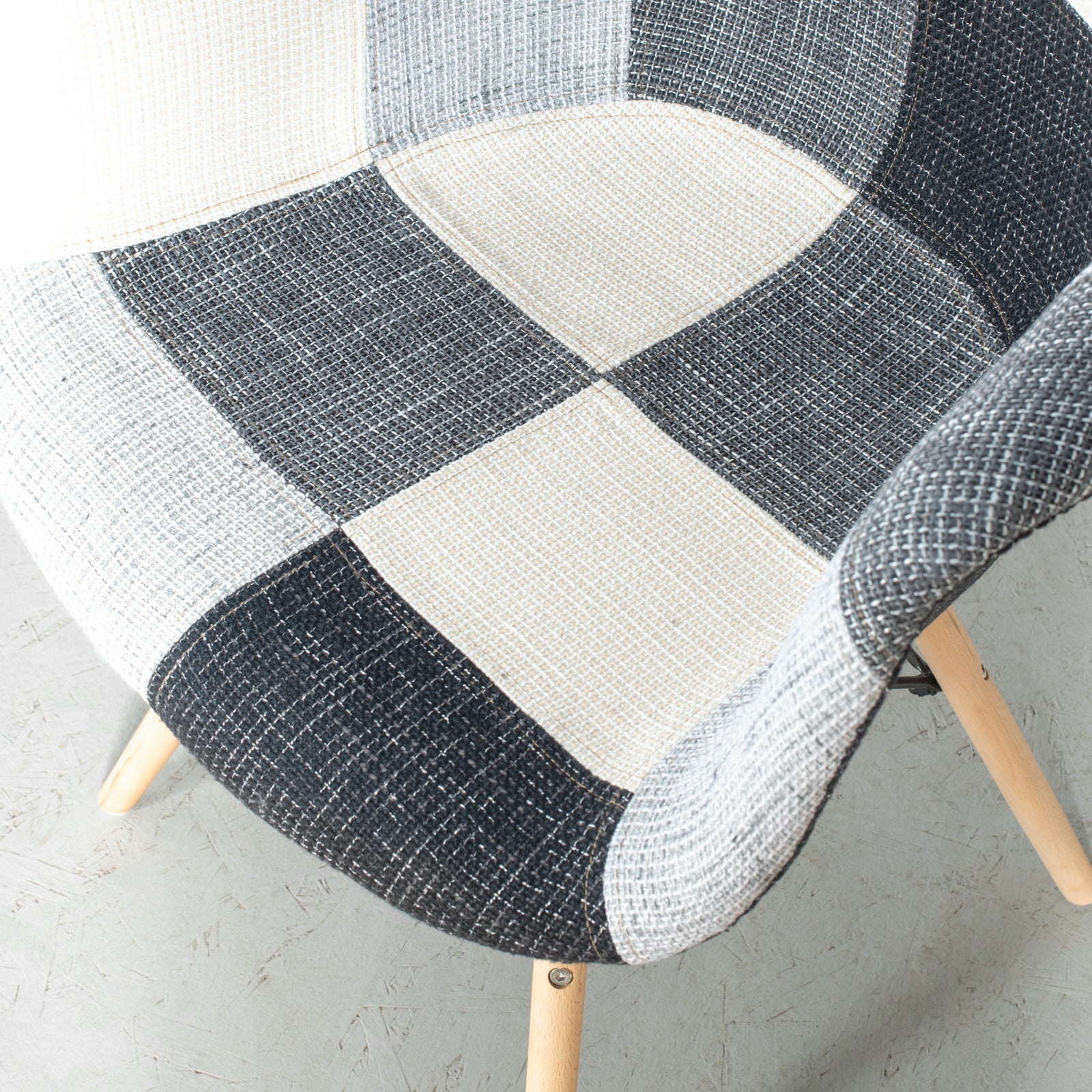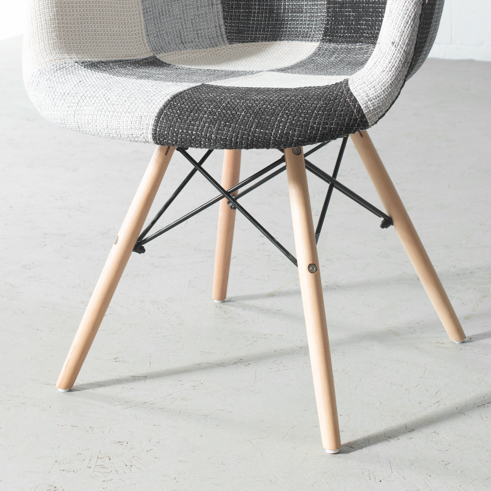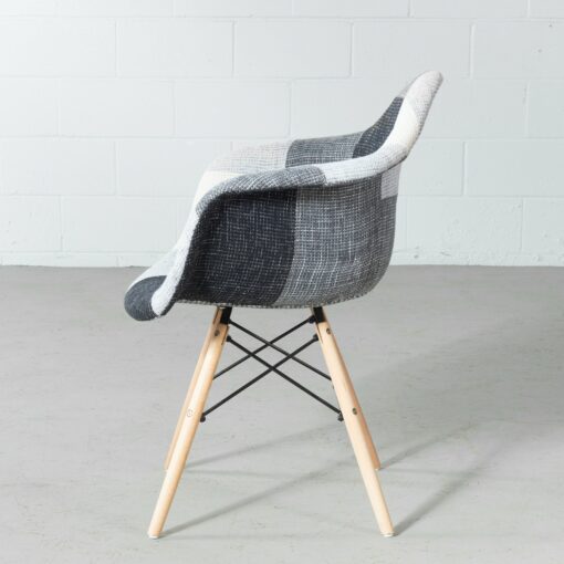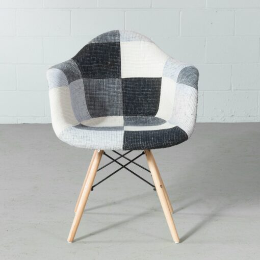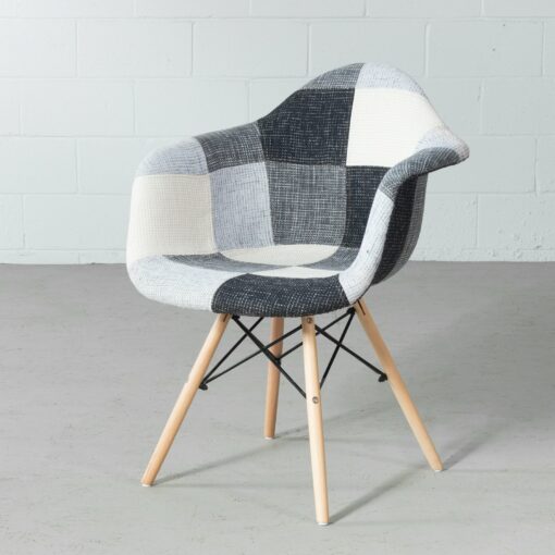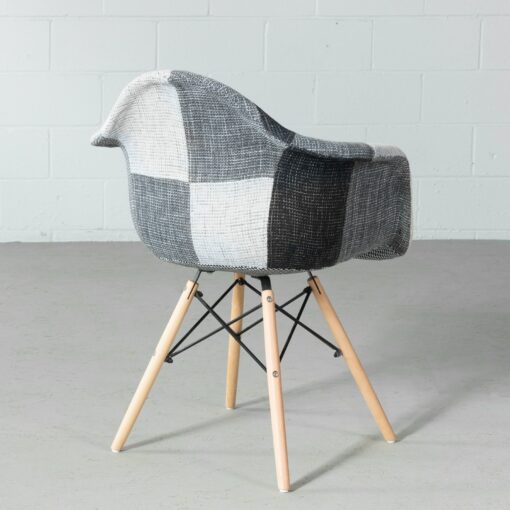 The Eames style padded chair is inspired by the beautiful and timeless designs of Charles and Ray Eames, known for creating the famous DSW chair. Eiffel features a padded seat, upholstered in beautiful patchwork. Its beech wooden legs with plastic floor protections and its newly improved hardware inserts, make it quick and easy to assemble.