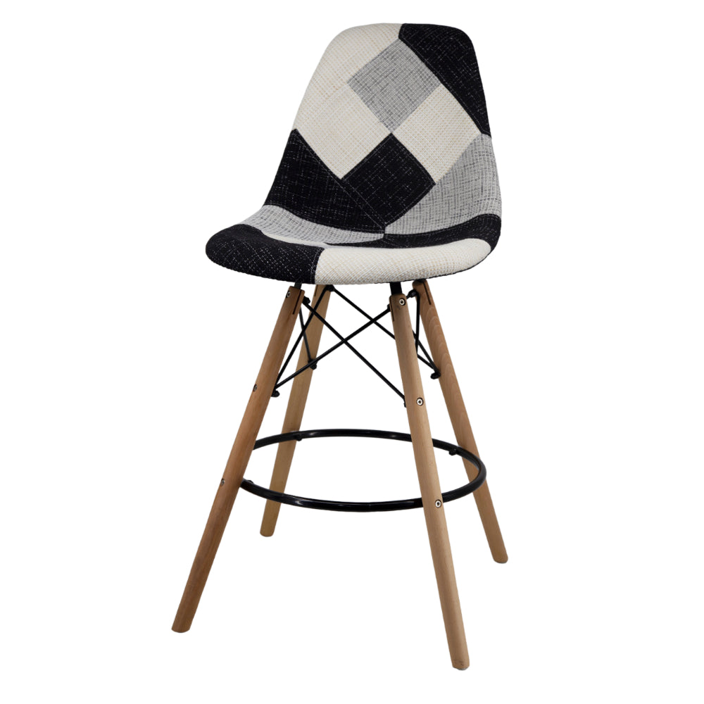 ESSEN – Grey Monochrome Fabric Patchwork Stool