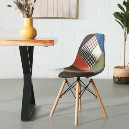 ESSEN – Multicolour Fabric Patchwork Side Chair