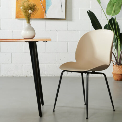 The GEORGINA Dining Chair is perfect for giving your dining space a contemporary update. Inspired by the anatomy of a beetle, this stylish chair is made from strong metal legs for enhanced durability. Light, robust and comfortable, the GEORGINA chair adapts to many environments and uses.
