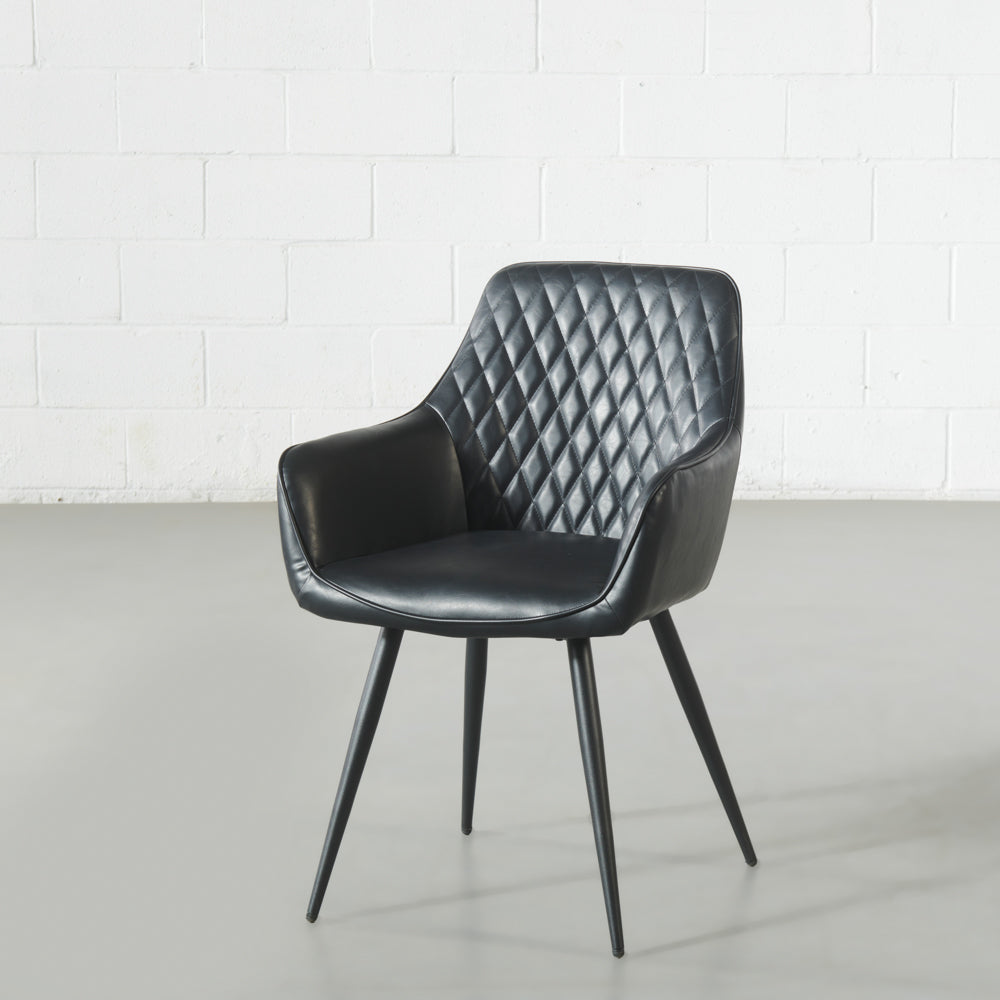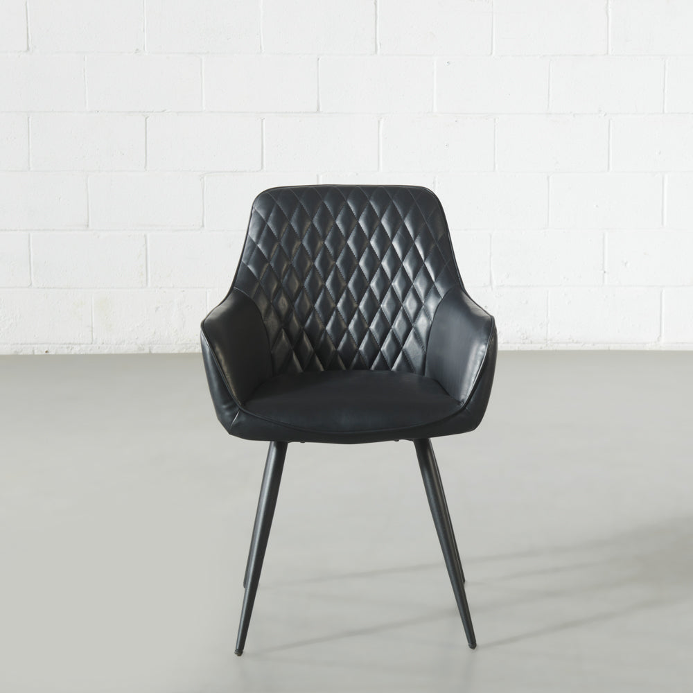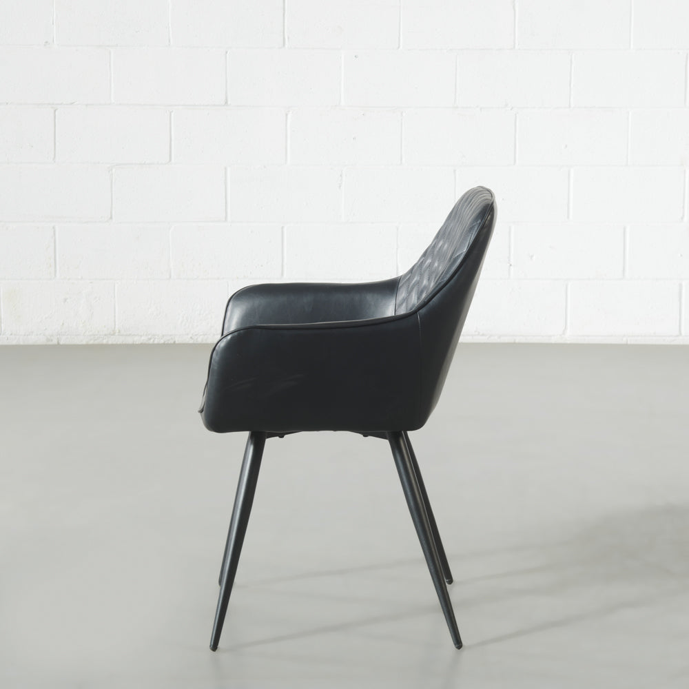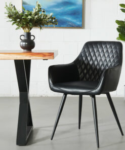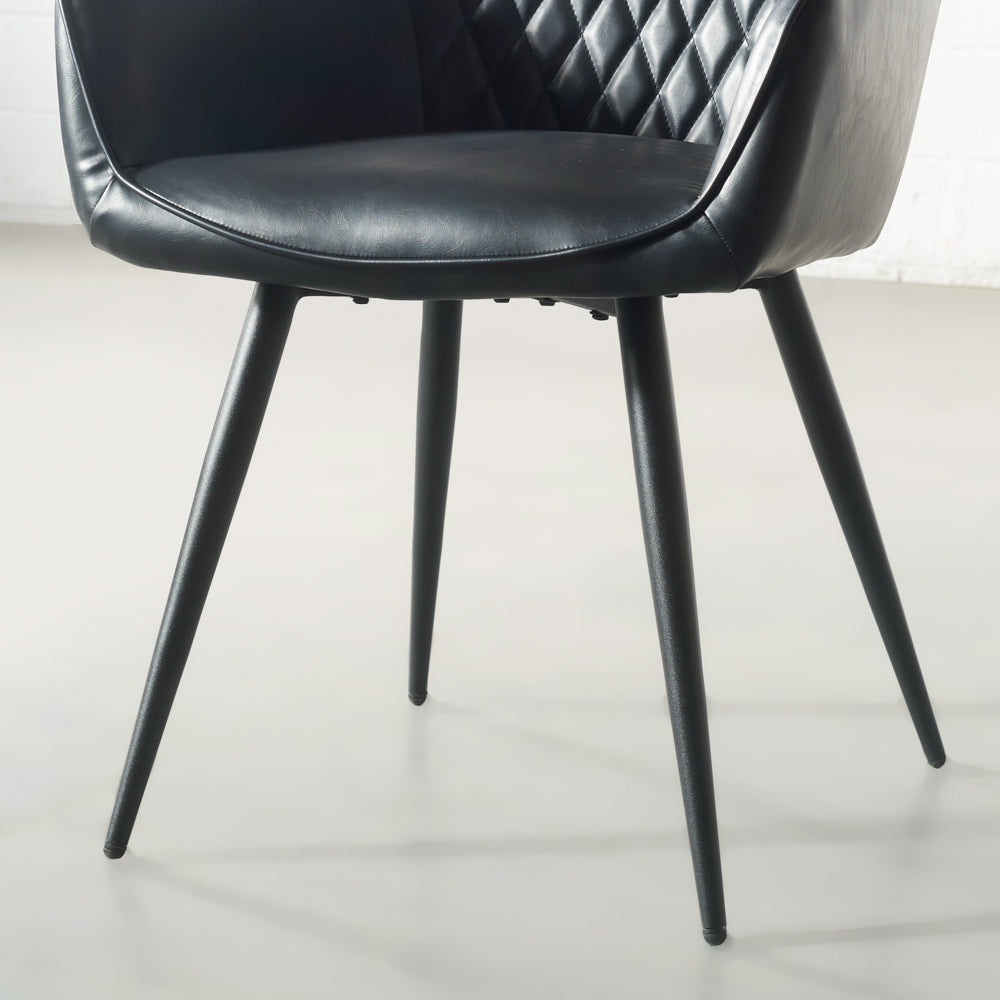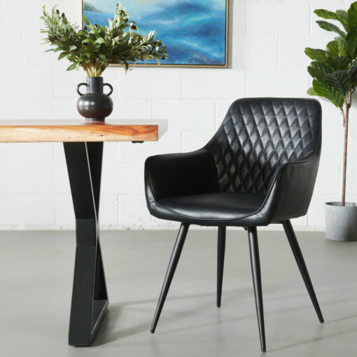 Experience modern industrial elegance with the HARLEM Dining Chair. Its sleek design is complemented by high-grade vegan leather upholstery, featuring diamond tufting on the seat back for enhanced comfort. The chair’s angled legs come with integrated armrests for added convenience, making it a perfect addition to your dining space.