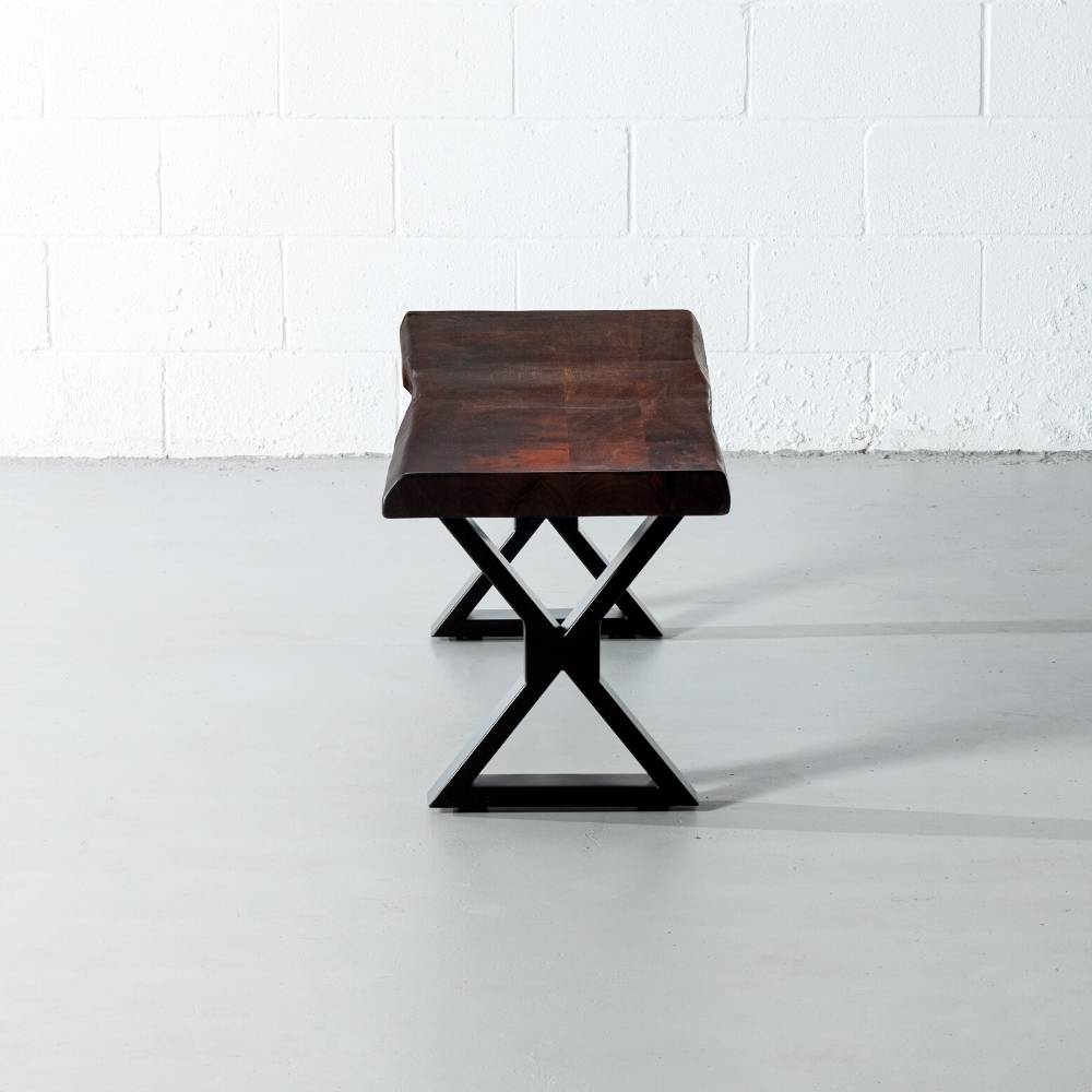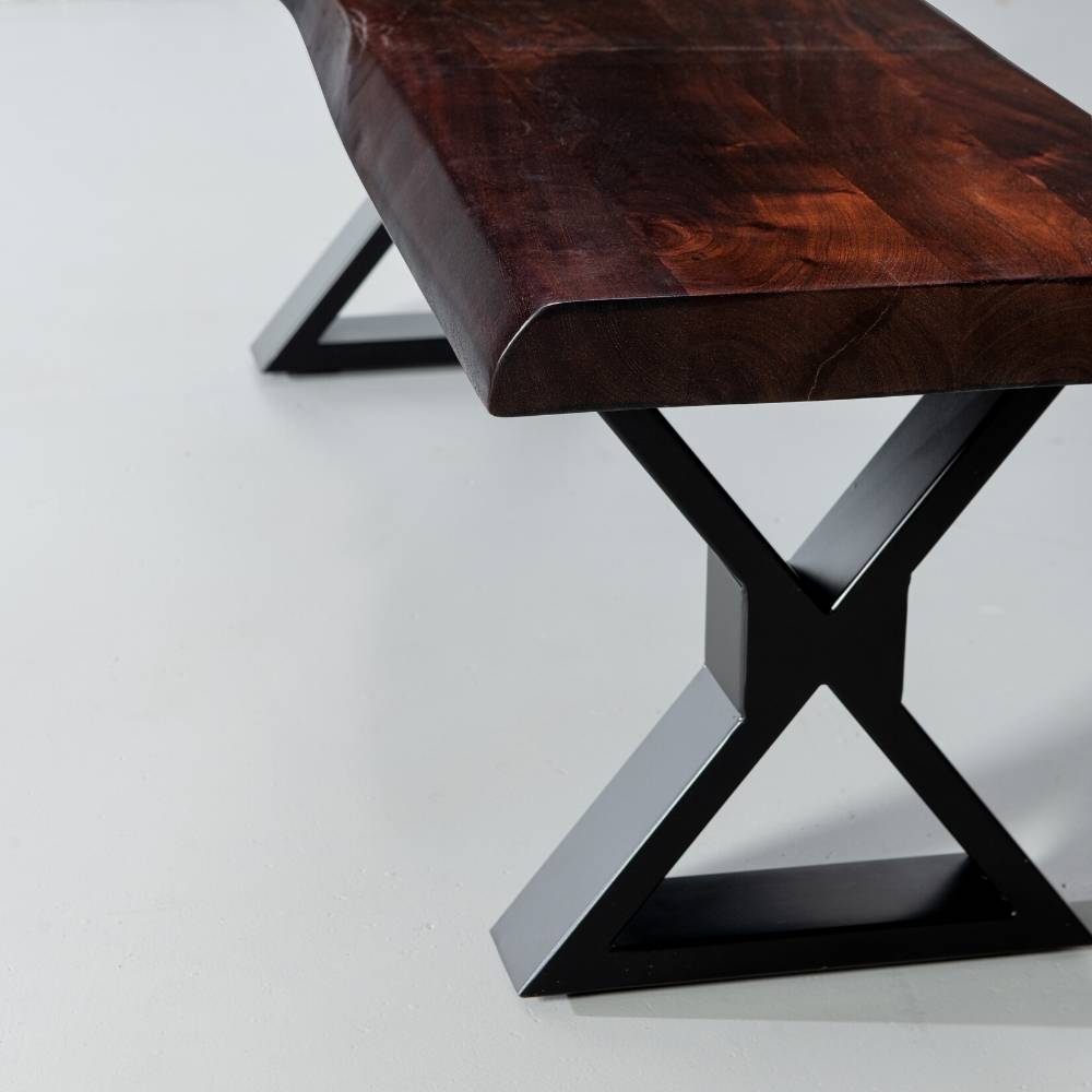 Please note that each and every acacia live edge bench is unique with its markings such as crevasses, grooves, and knots as well as grains, textures and other natural imperfections which make it a one-of-a-kind piece of modern art. The colours of the finish may also vary from table to table due to the fact that the tonality of acacia slab varies and that each table is handcrafted.