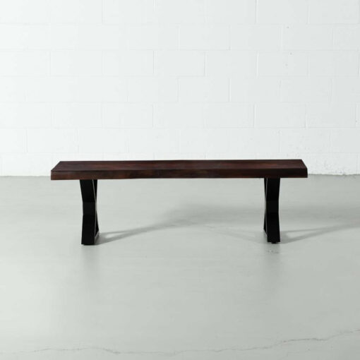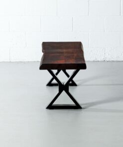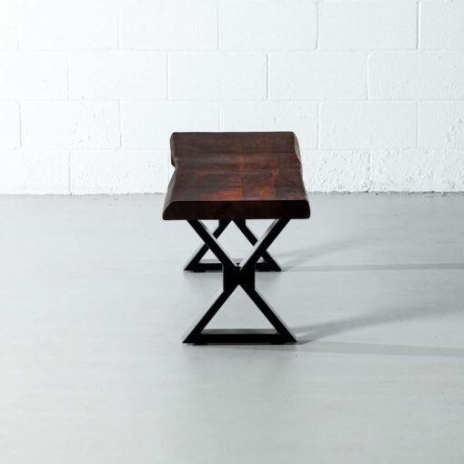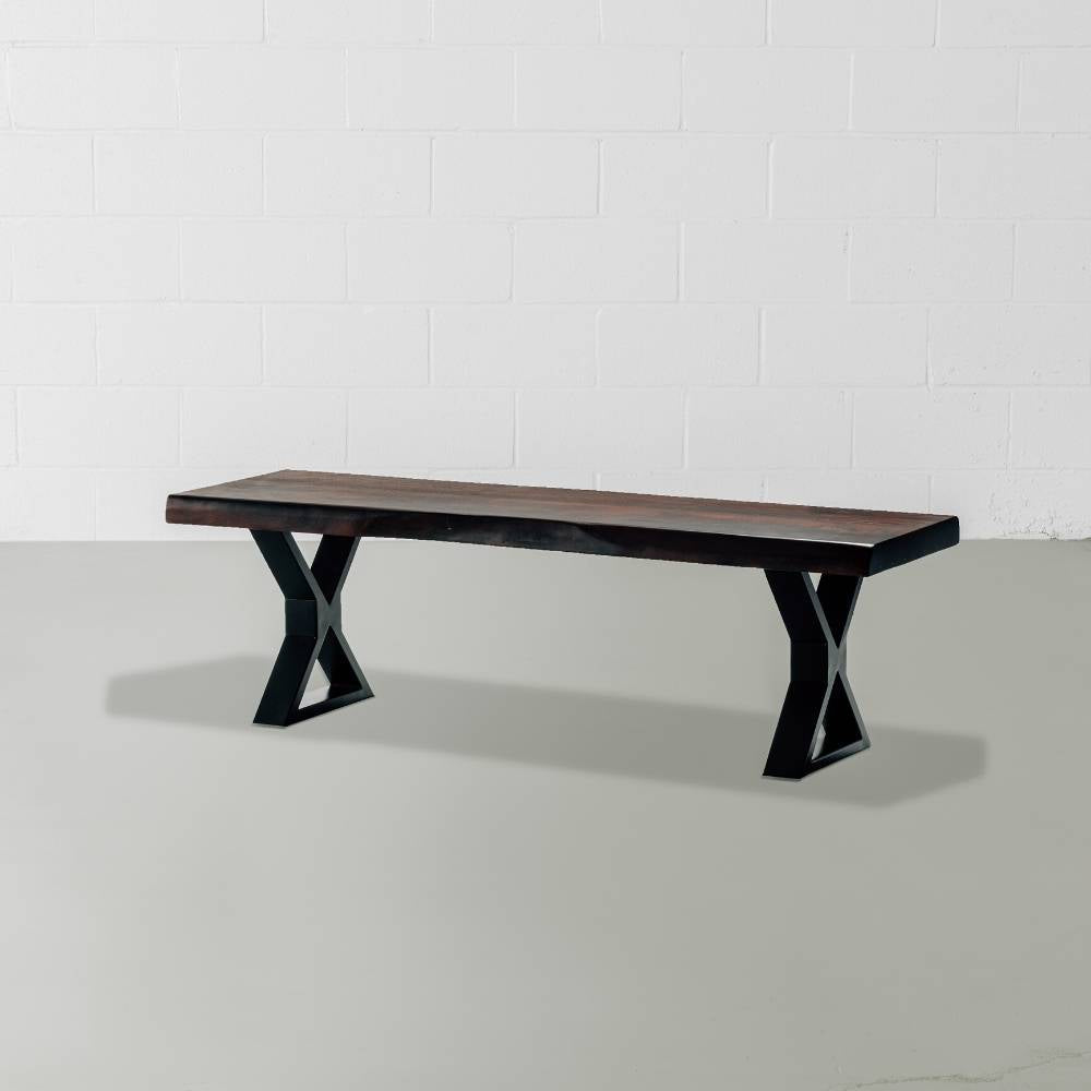 The Estrel acacia live edge bench comes in a honey walnut finish, paired with our industrial matte black x shaped legs. Handcrafted from solid acacia wood, Estrel brings a modern rustic look to any space as a wooden bench in the dining room, hallway, bedroom or even used as a narrow coffee table in the living room. Estrel will bring natural vibrance to your living space for years to come.