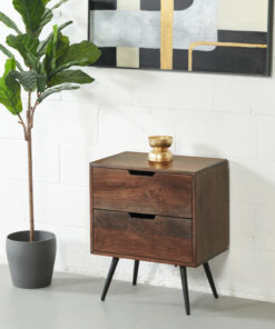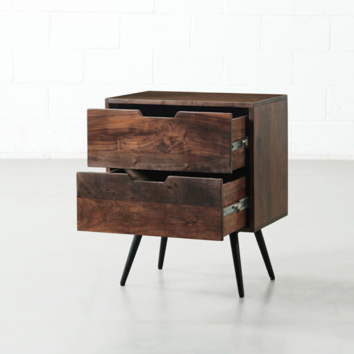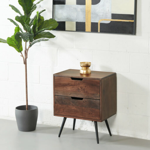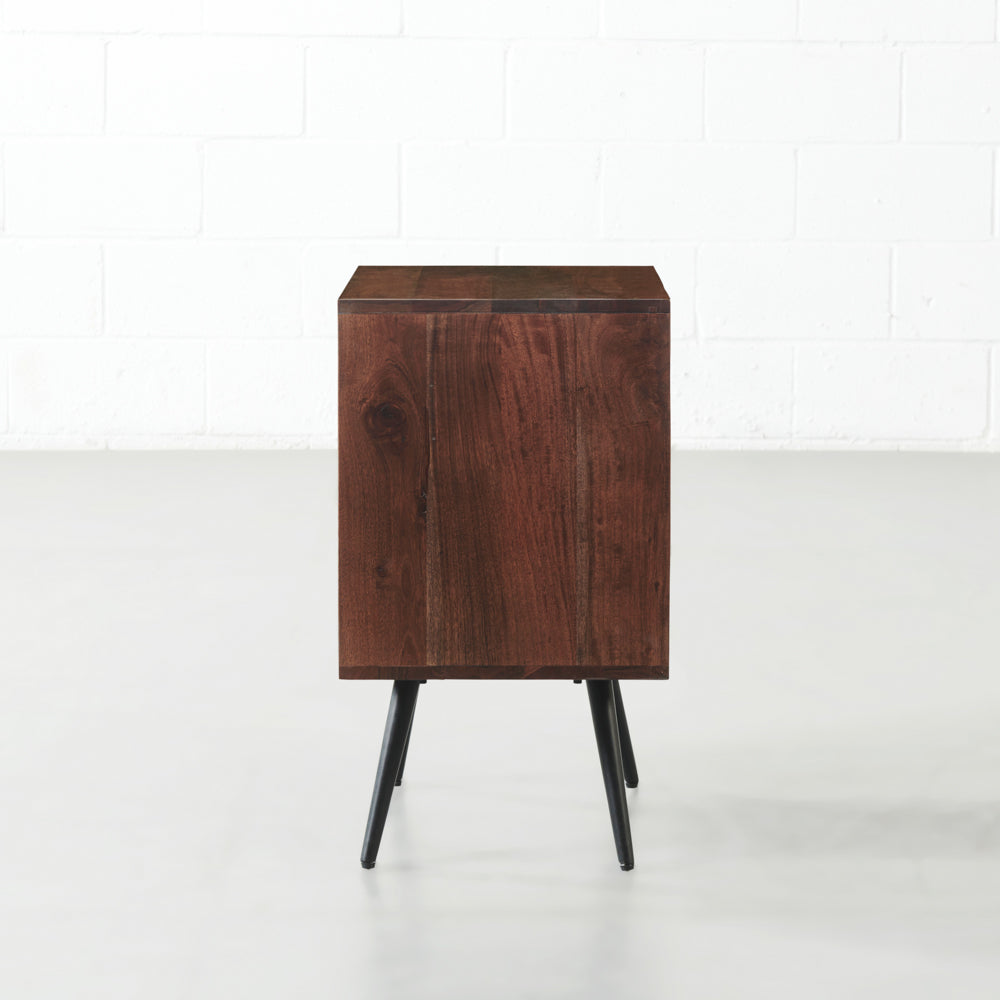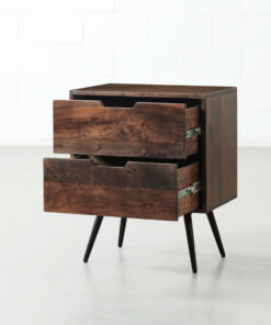 Madrid, easy on the eyes and even easier on your decor. The solid acacia wood nightstand has been hand-polished by skilled artisans in a gorgeous walnut stain that amplifies the natural beauty of the wood grain.