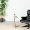 Multifaceted style. A dramatic silhouette with a stunning white marble top and vintage burnished gold “legs” to add some excitement to your space. The base is created of irregularly shaped polygons and each piece is uniquely different due to the natural variations in marble.