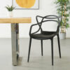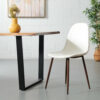 Inspired by the timeless mid-century designs of Charles & Ray Eames. The solid laminated bentwood shell has multiple layers of foam upholstered in black vegan leather. It takes on a new approach to the classic DSW chair, switching out the Eiffel leg design for a solid minimalist metal structure in a matte black finish. Available in black, white, brown, and dark grey.
