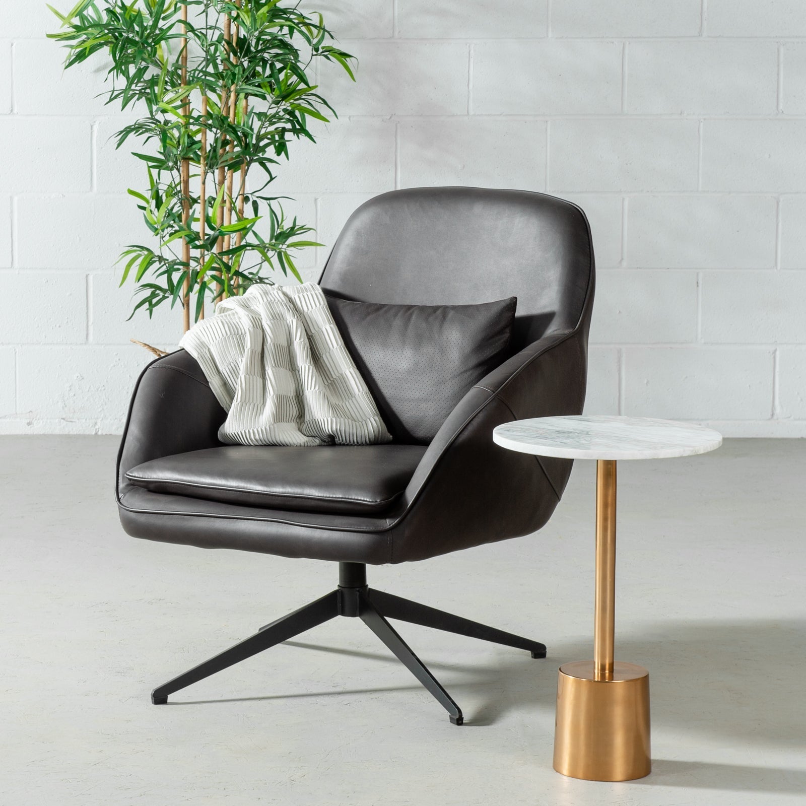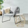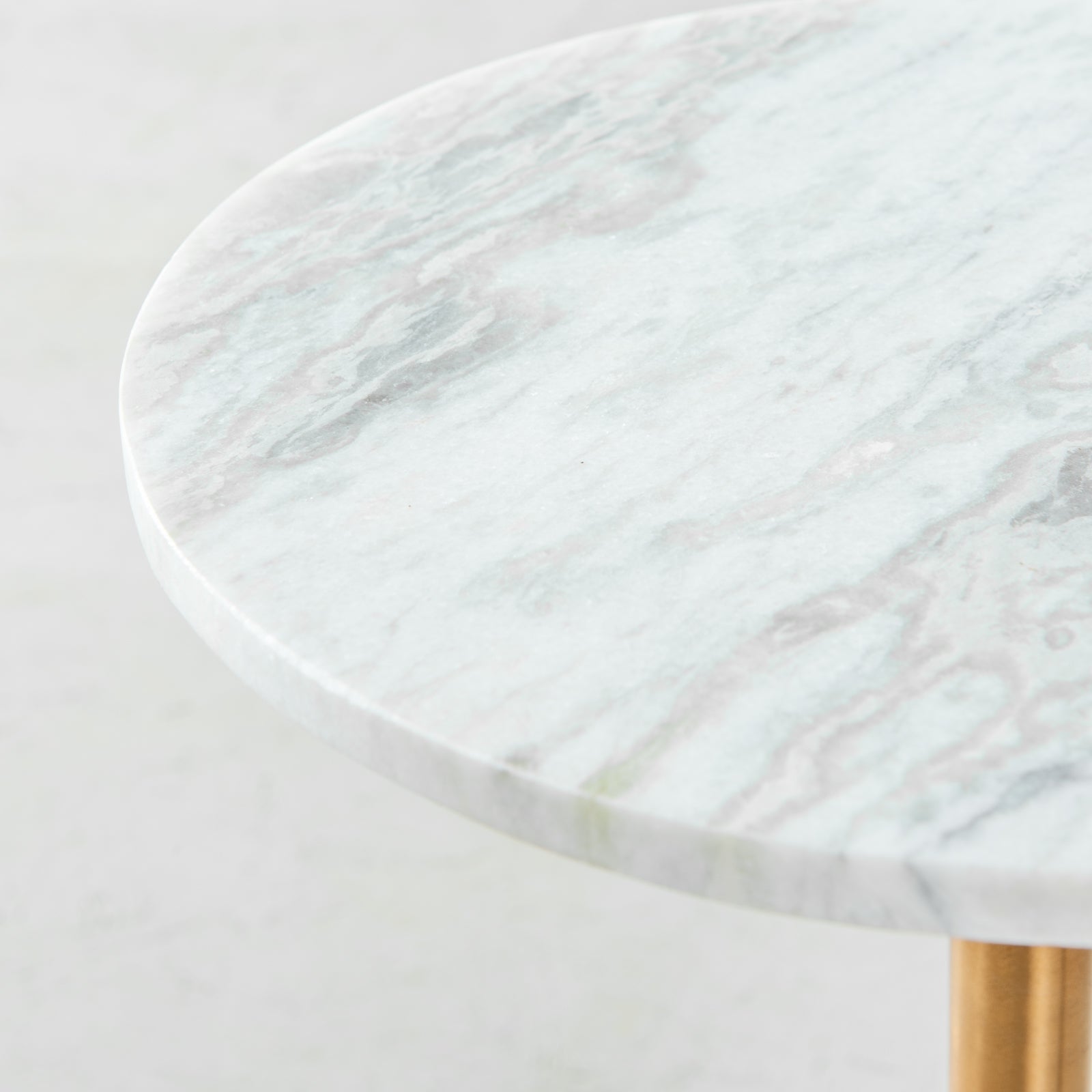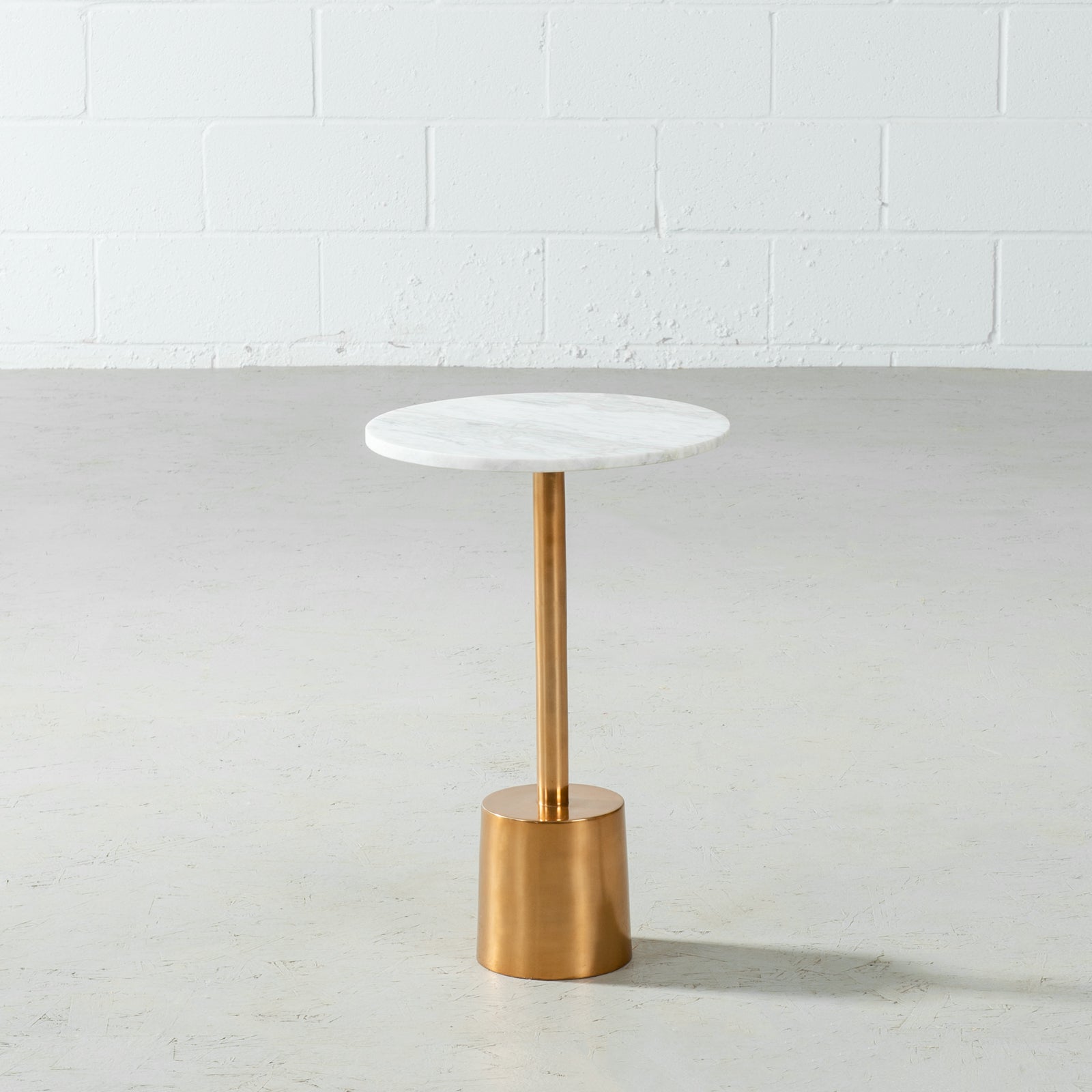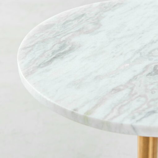 With a classic mid-century design, this unique marble side table sits atop a single pedestal brass base sturdy enough to support its solid marble top. Sleek and modern lines define its appearance; Nubia can be used in your living room or in any room of your home that needs a touch of simplistic elegance