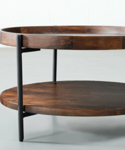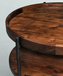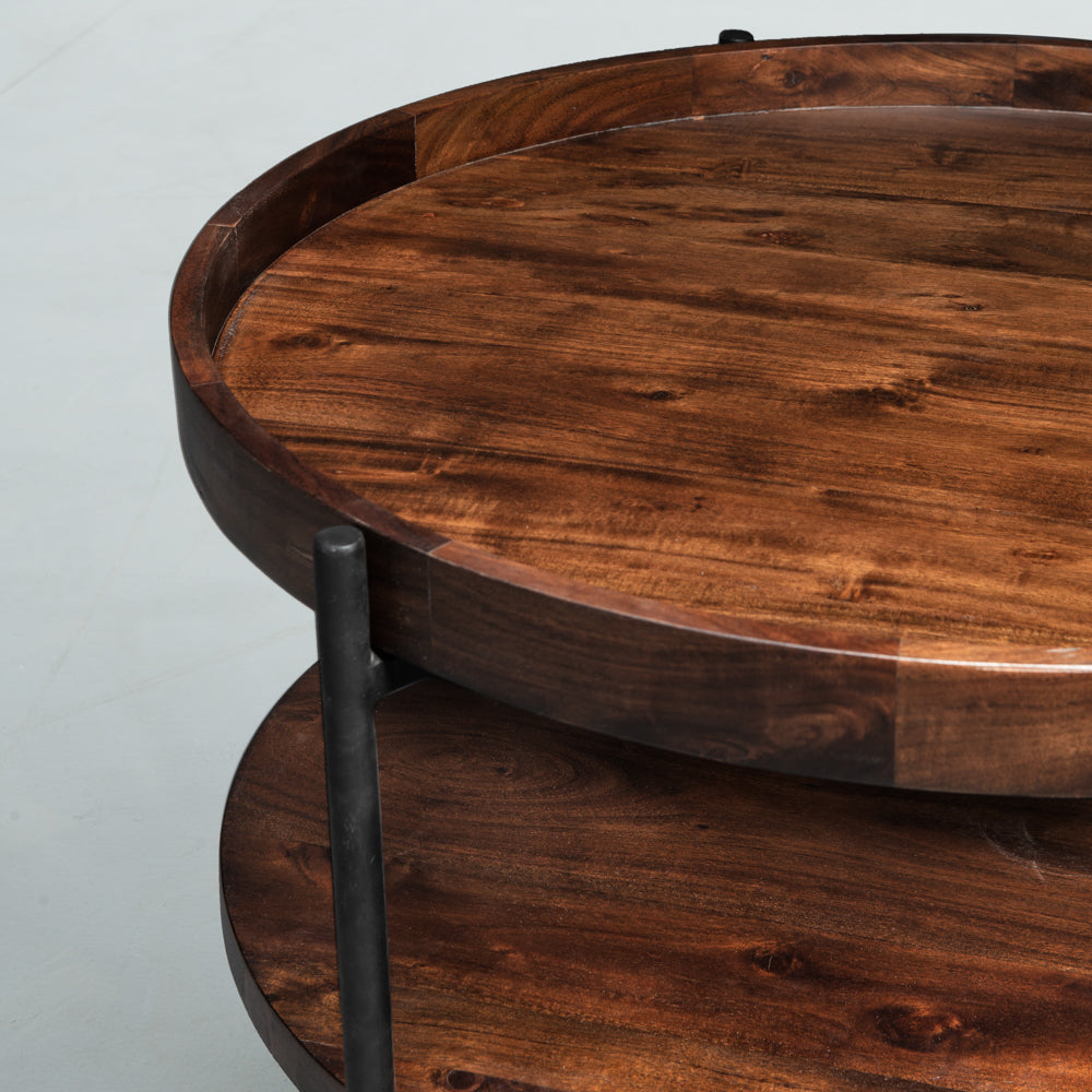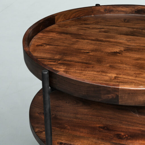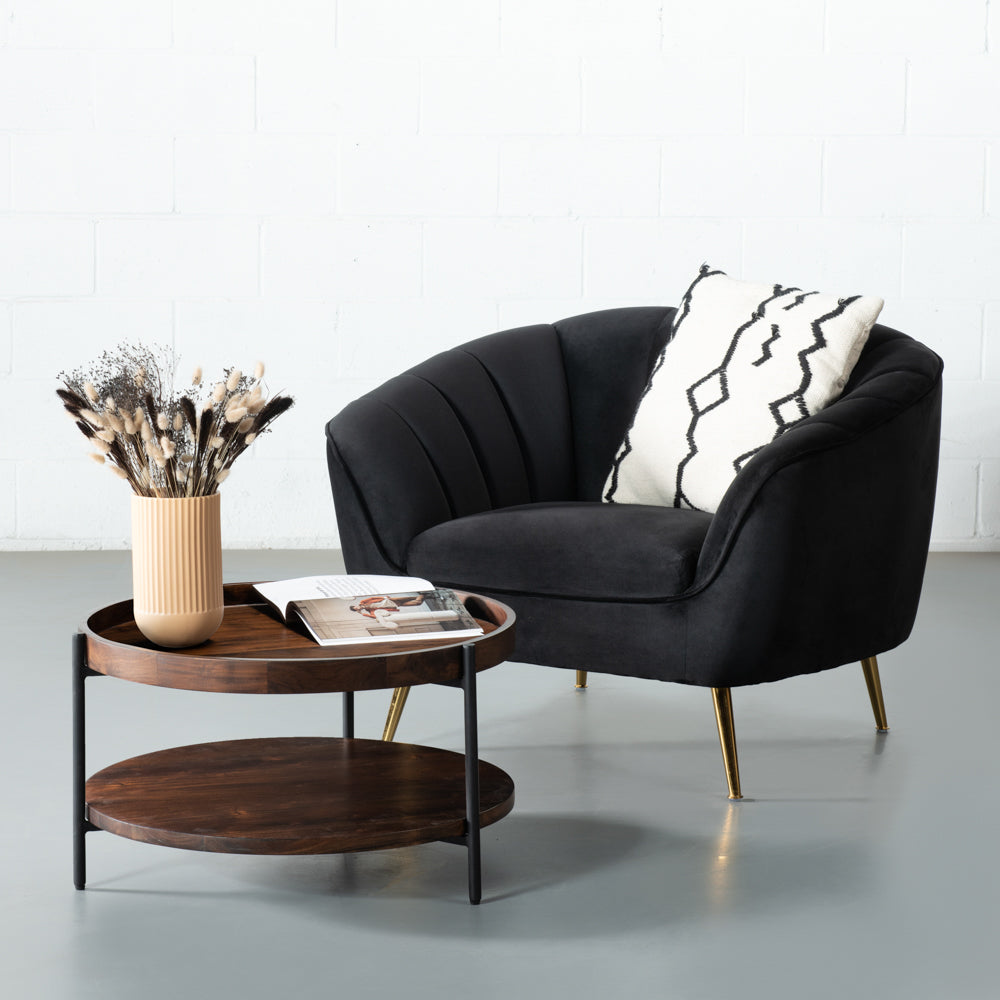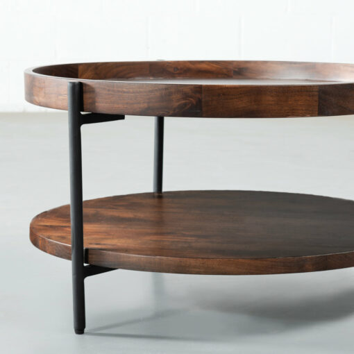 The PAVIA coffee table delivers both style and functionality. The top’s rounded lip will ensure items stay in place, while the bottom can help store extra items. The solid natural wood and curved design bring elegance and warmth to any décor. The sleek black powder-coated legs elevate the design for a modern look.
