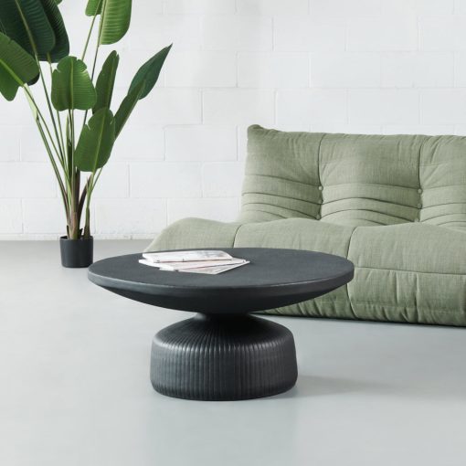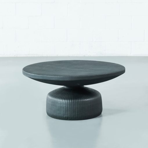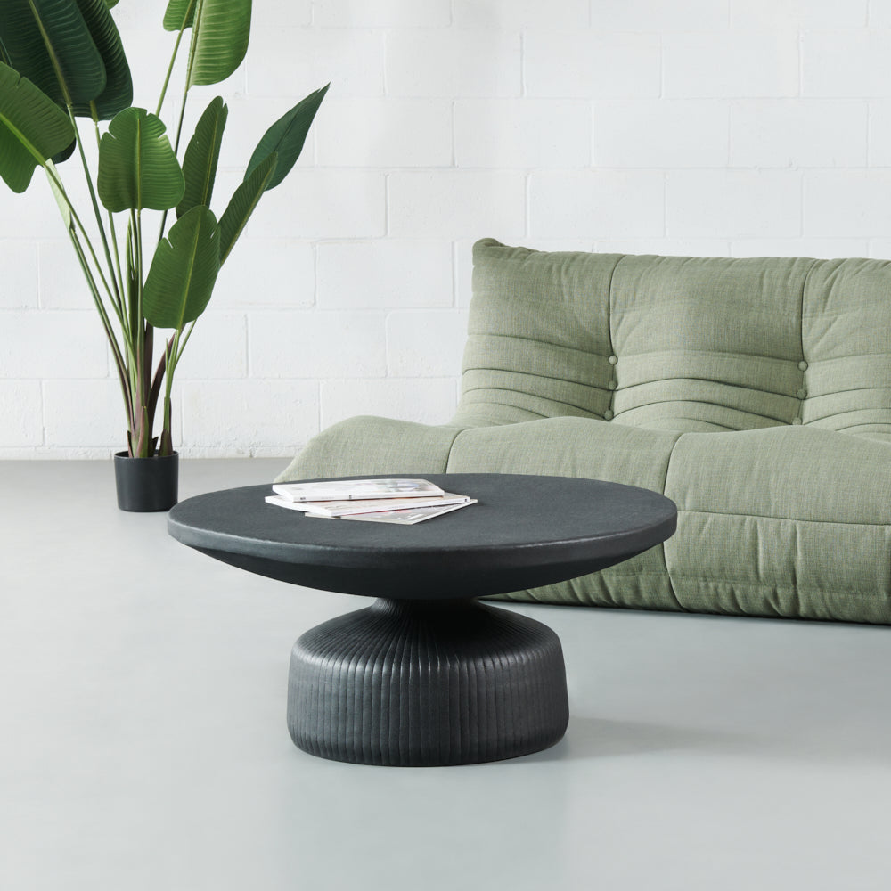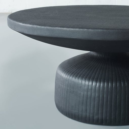 This modern coffee table has a sculptural profile that adds a touch of luxury to any room. The statement detailing and matte black finish make this a great piece to add to your space.