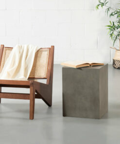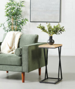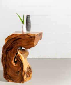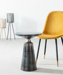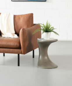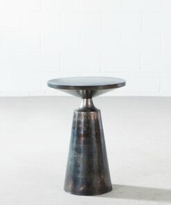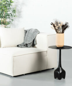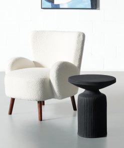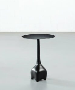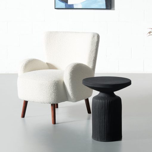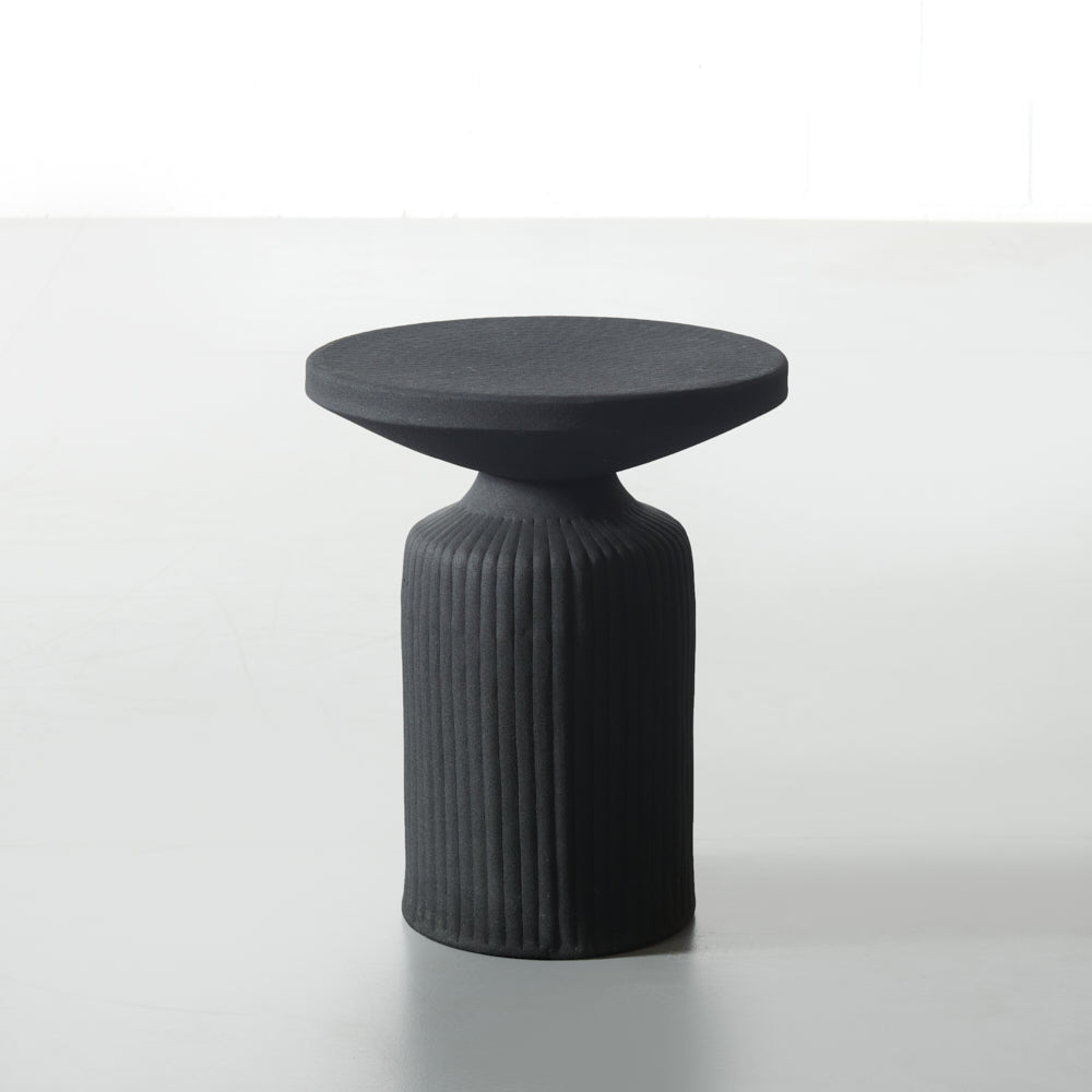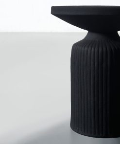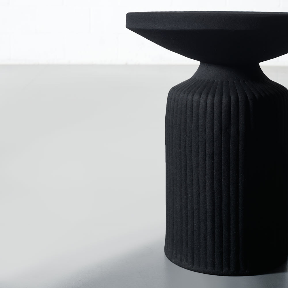 This modern end table has a sculptural profile that adds a touch of luxury to any room. The statement detailing and matte black finish make this a great piece to add to your space.