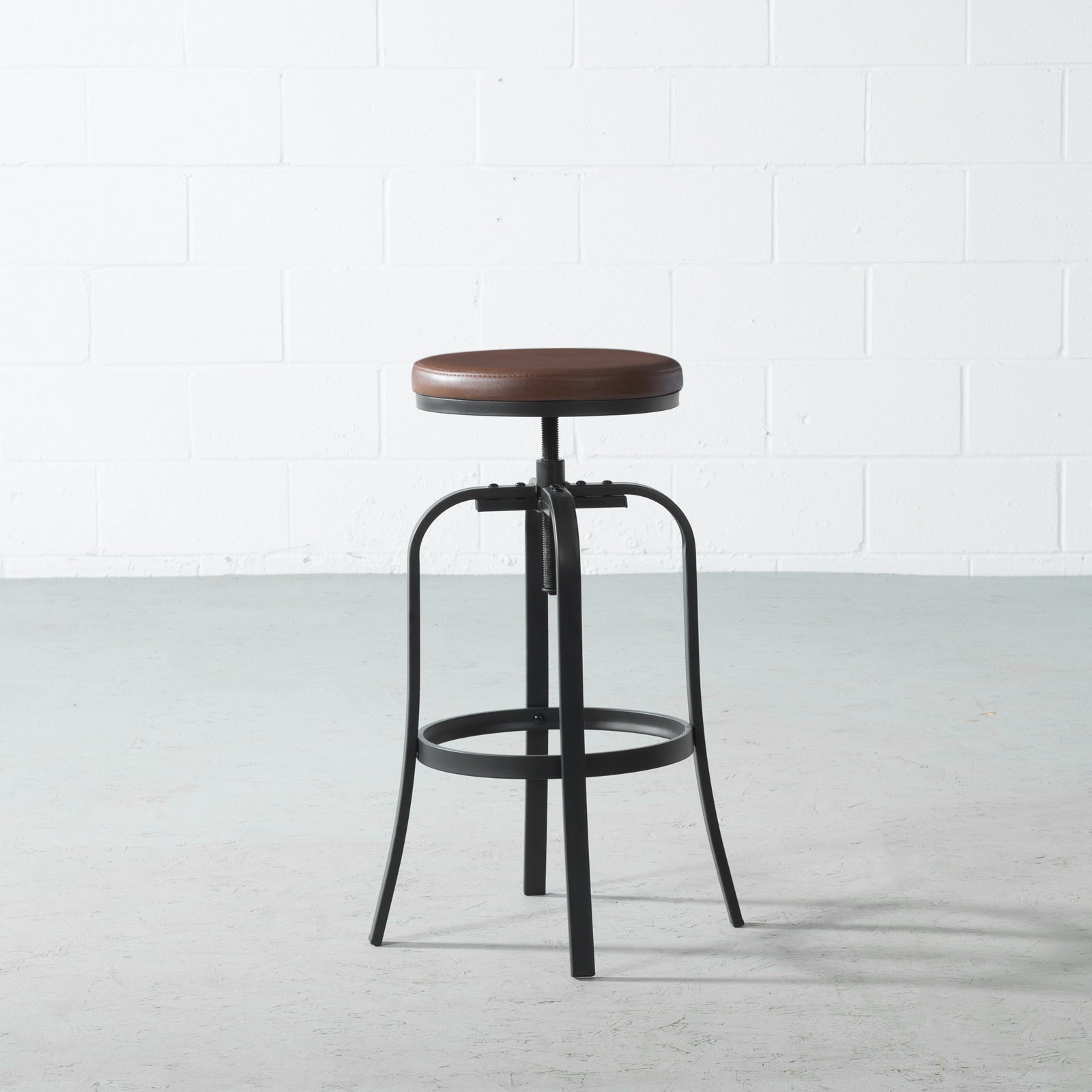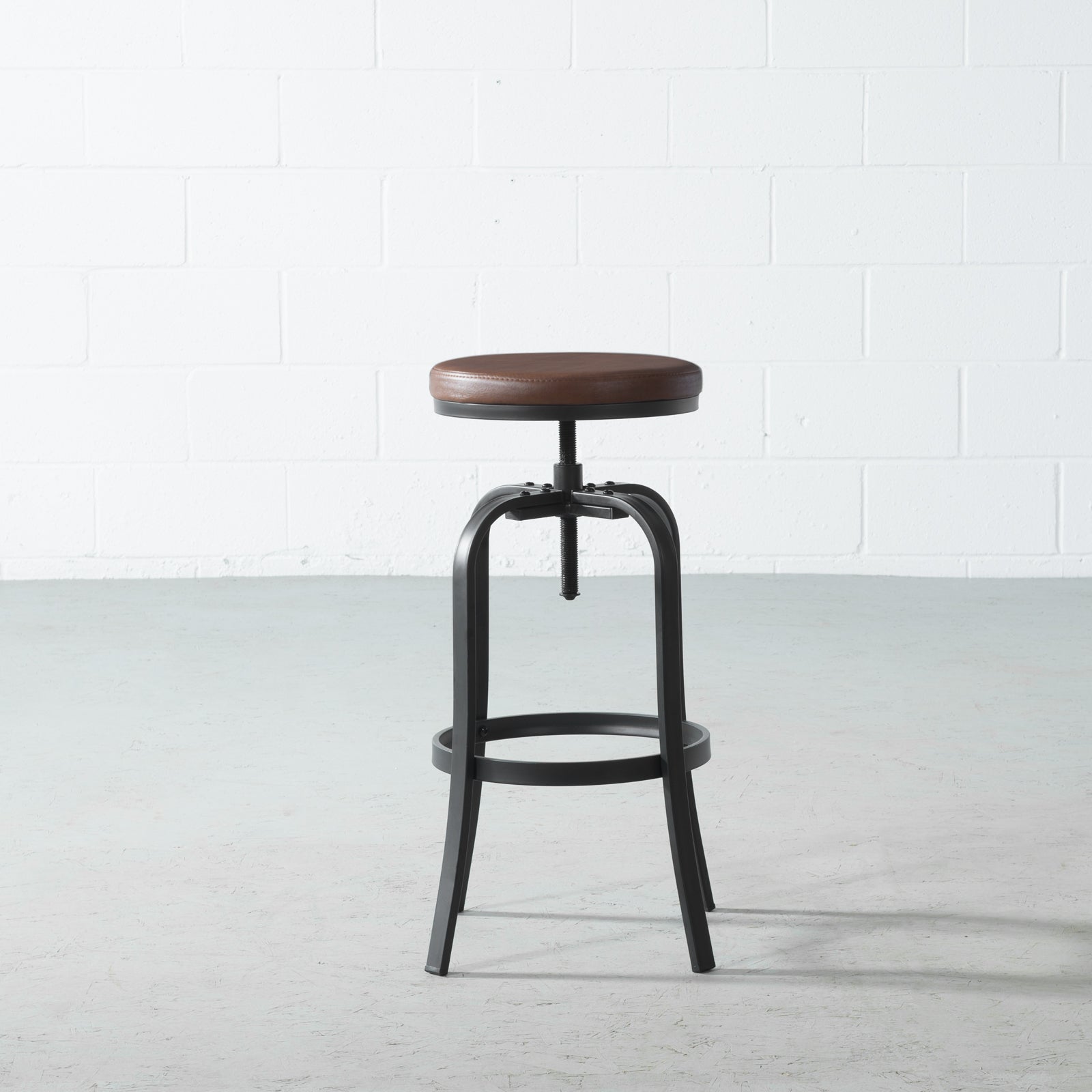 A classic shape, with modern materials. Black powdered-steel legs and a vegan leather topper make this the perfect perch for kitchens, bars, anywhere!