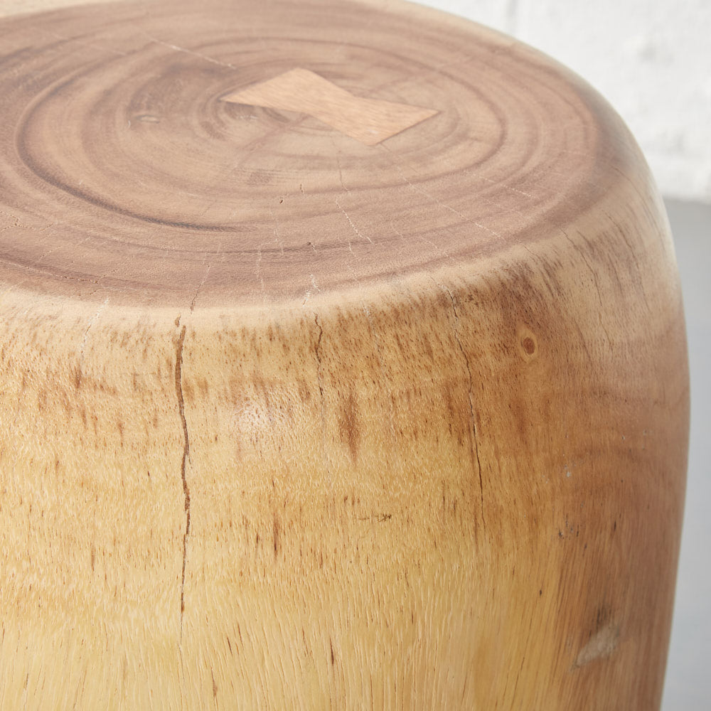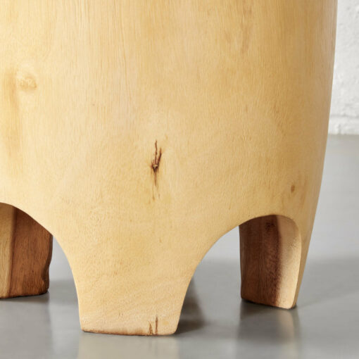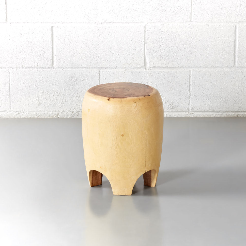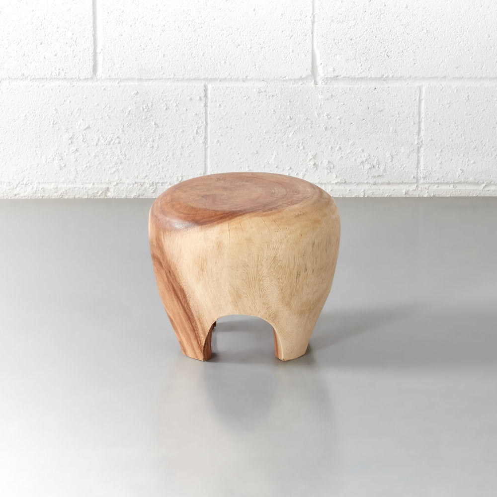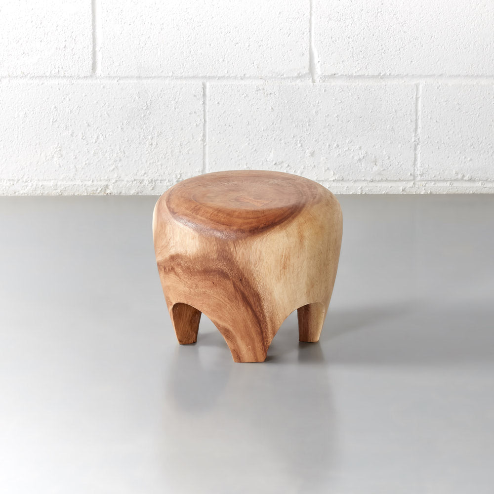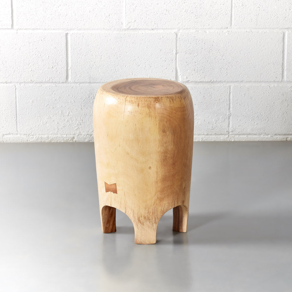 Embrace your naturalist aesthetic with this stool fashioned of solid Suar wood. Each piece is unique and celebrates the natural grain patterns and striations of the wood