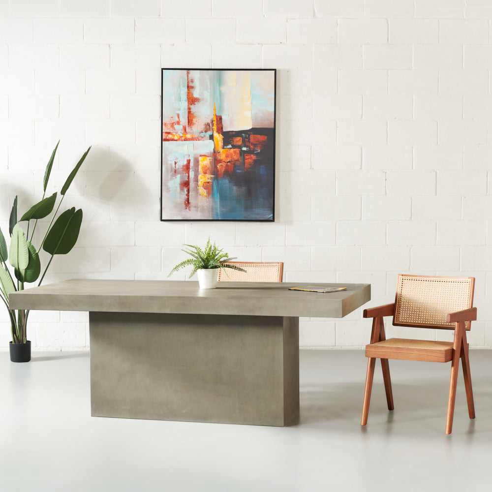 The Santorini Dining Table offers an enduring piece around which memories will be made. We traveled far and wide to find the highly skilled artisans behind each of our concrete pieces. Handmade using a specialized process, each piece is full of the characteristic allure of concrete. Finished with protective acrylic, the streamlined Santorini Dining Table brings timeless style to your home.