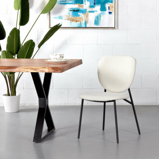 Modern and minimalist, the Sierra dining chair combines trendy style with great comfort. Its chic design and soft boucle fabric make for a seriously design-led dining space.
