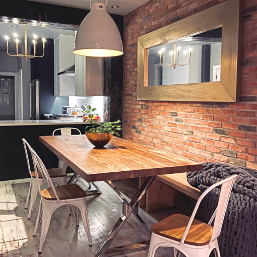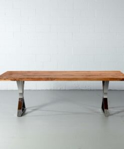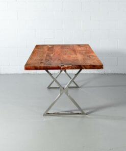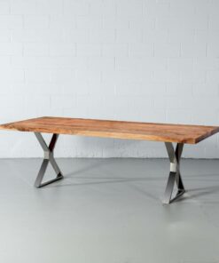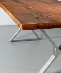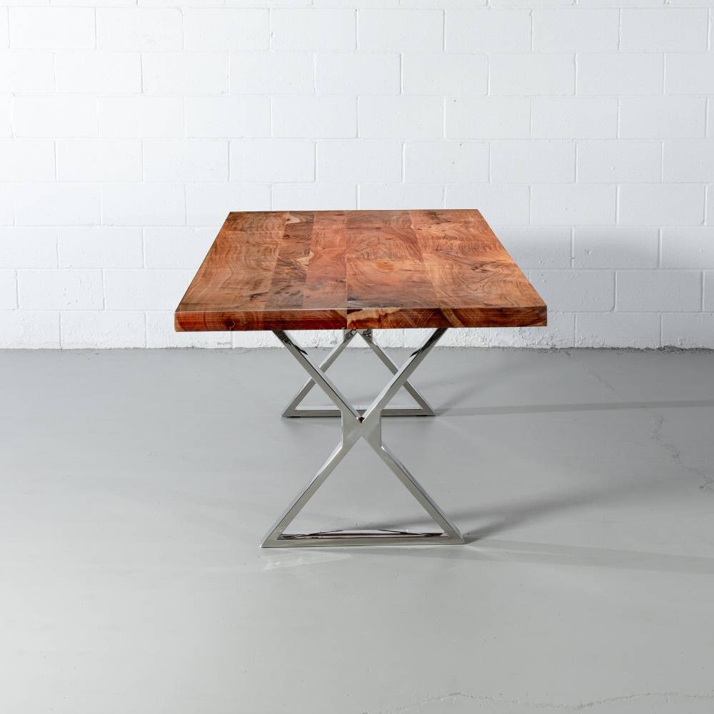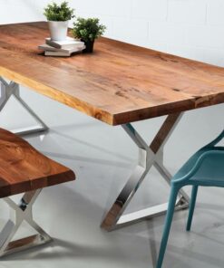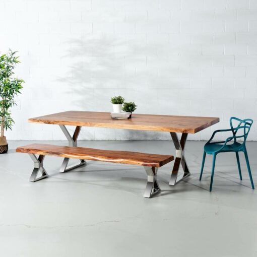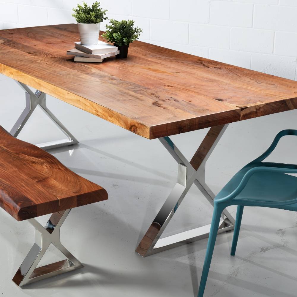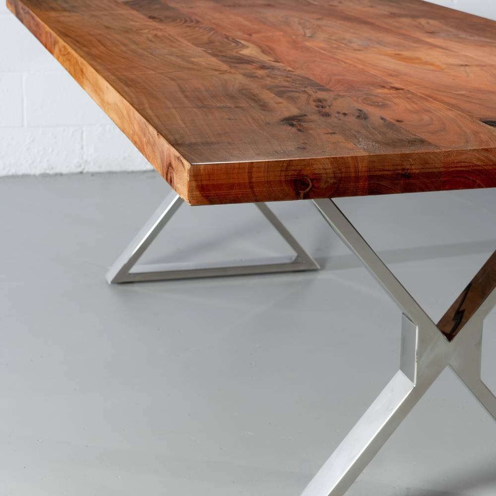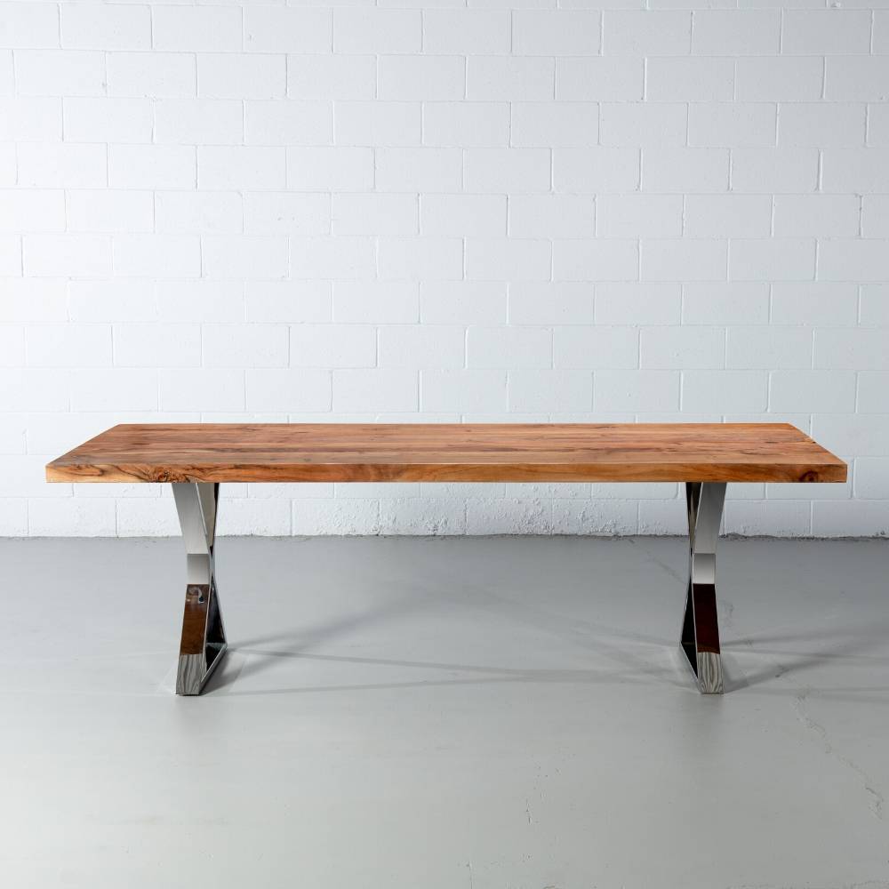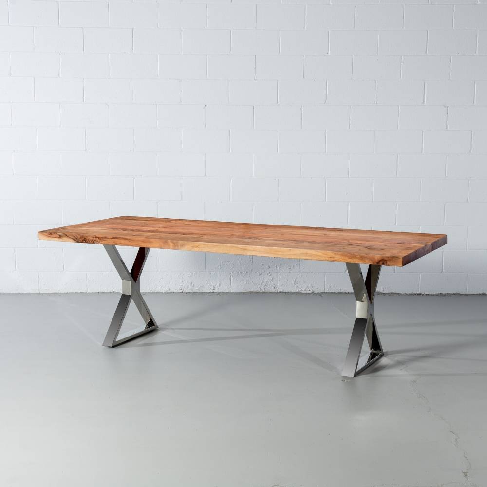 Straight Cut Acacia Wood Table with Chrome X-Shaped Legs/Natural Colour