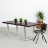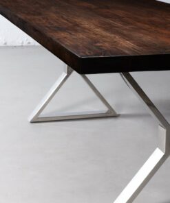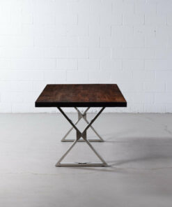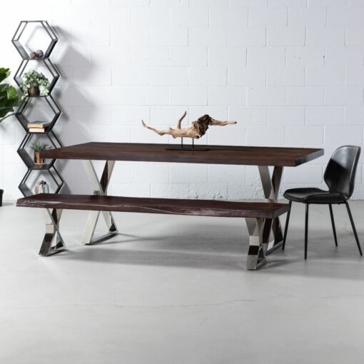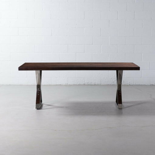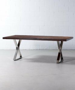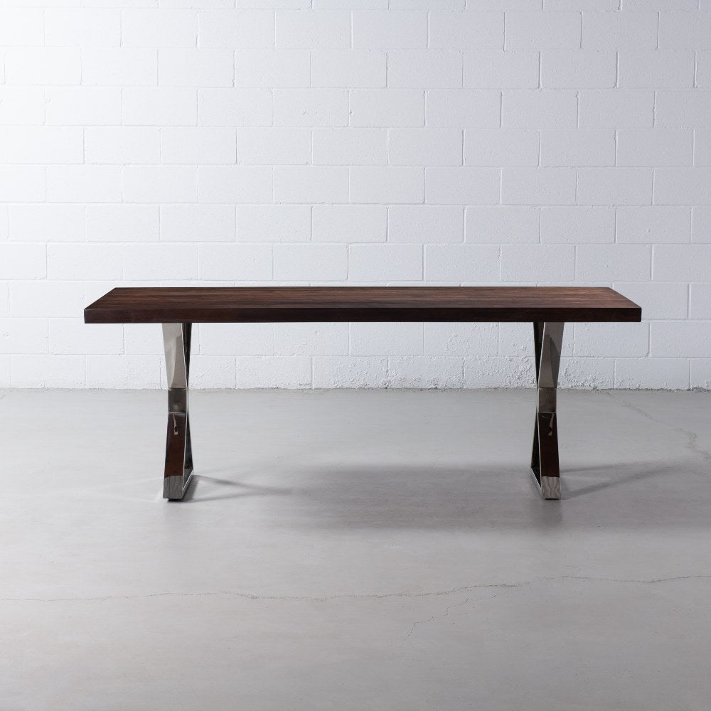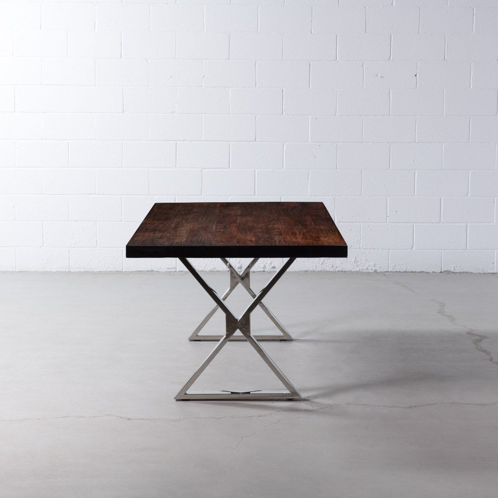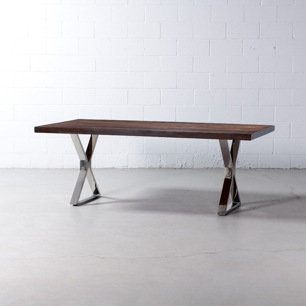 Straight Cut Acacia Dining Table with Chrome X Legs/Honey Walnut