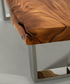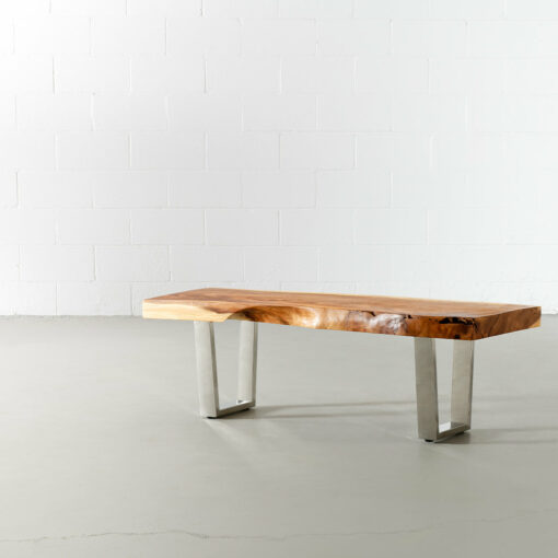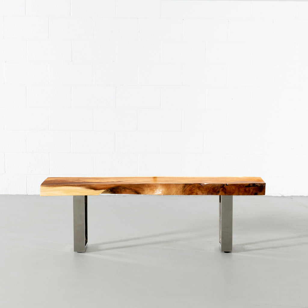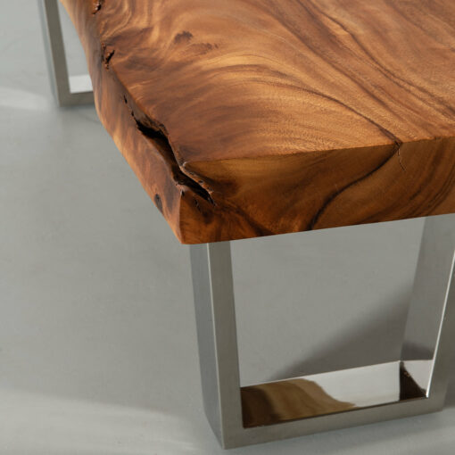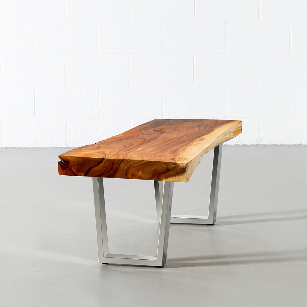 Suar Live Edge Wood Bench with Chrome U-shaped Legs/Natural