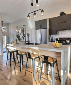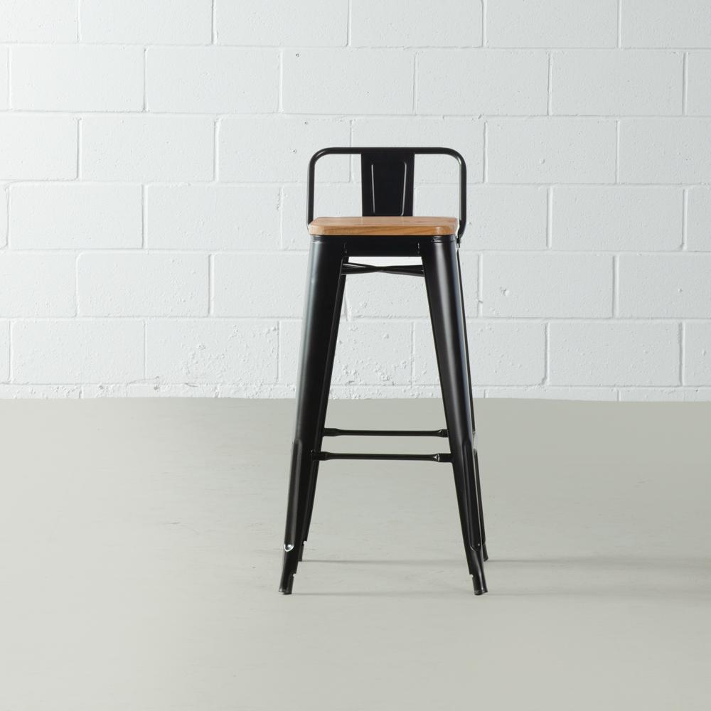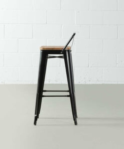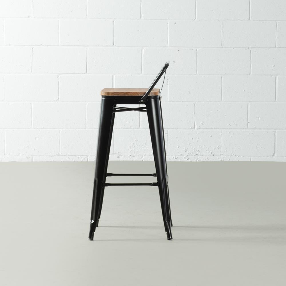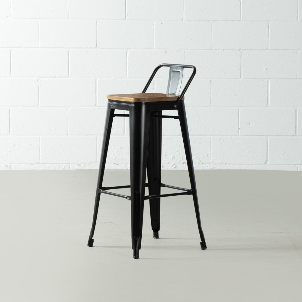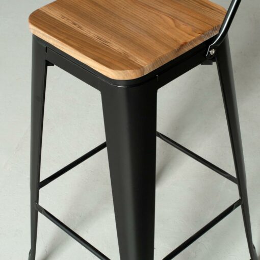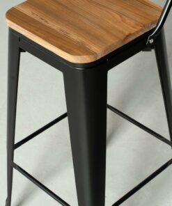 This bar stool has a beautiful steel matte finish with a beautifully contrasting elm wooden seat that adds a warm rustic flair. The square base is supported by metal legs that taper down to plastic bottoms that will remove the risk of scratching your beautiful floor. This chair is a perfect addition to your dining room, kitchen, restaurant or café. No assembly required. Have a seat (and look good)!