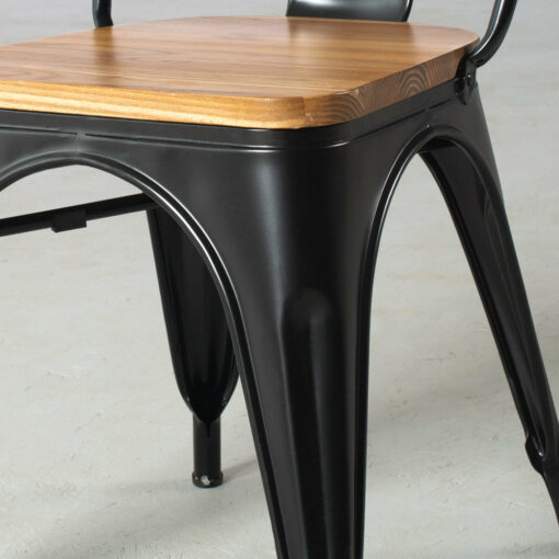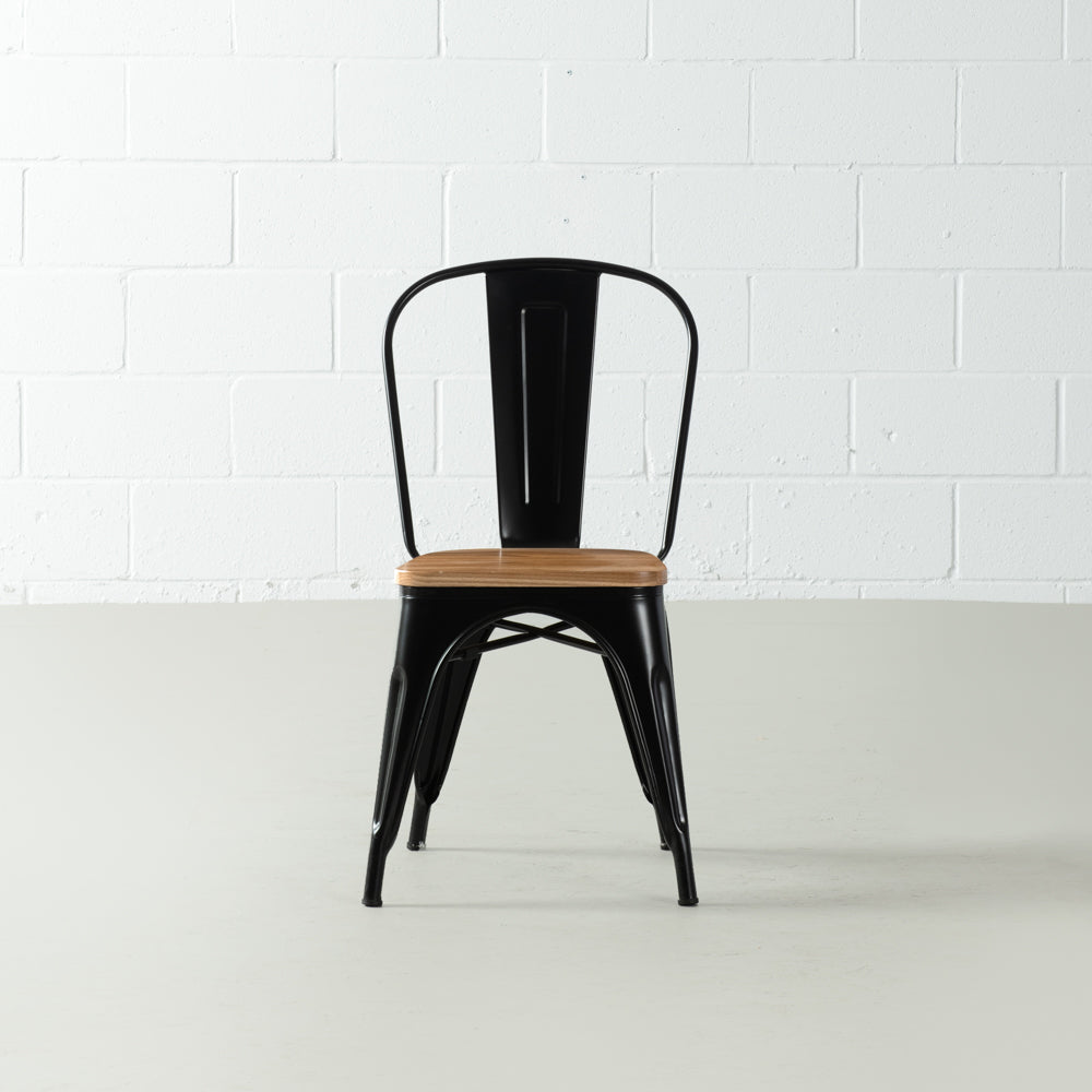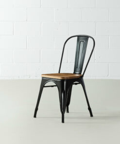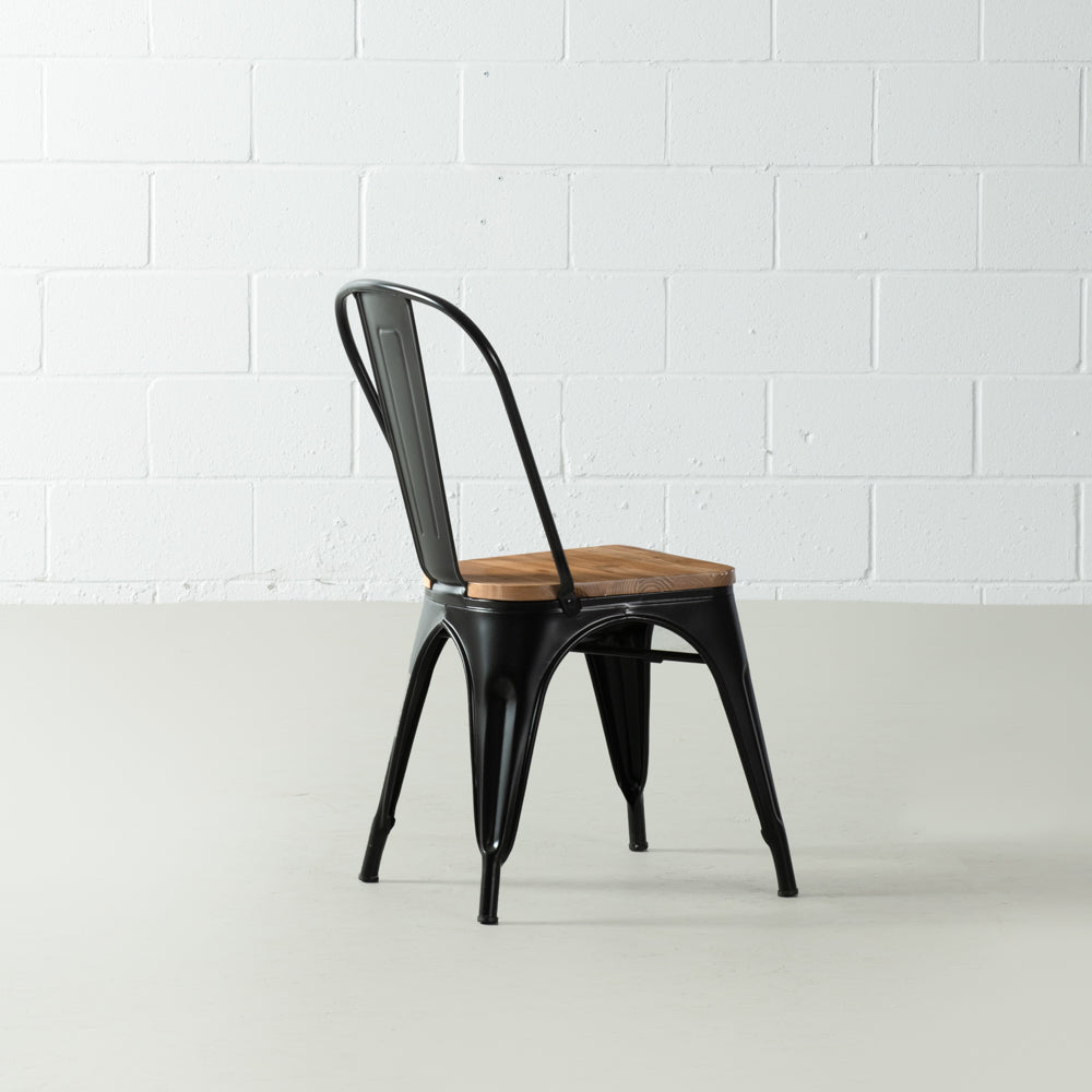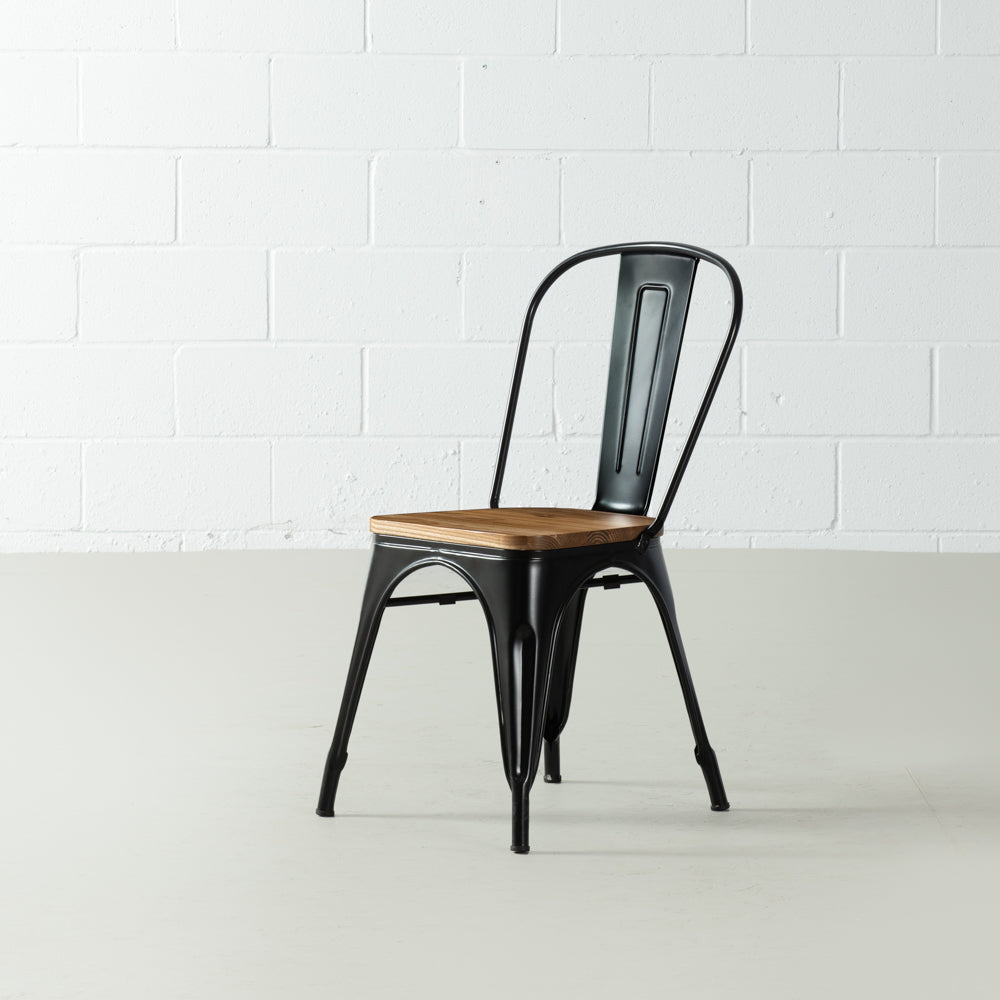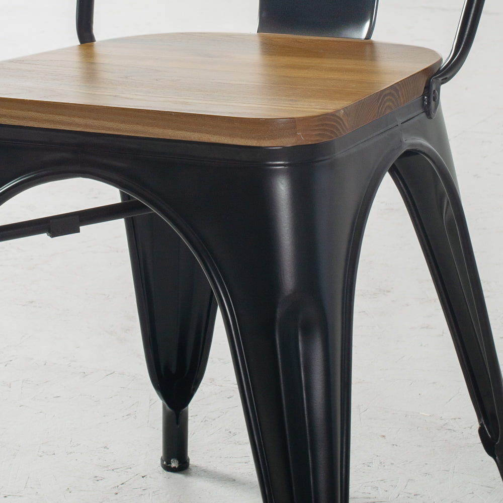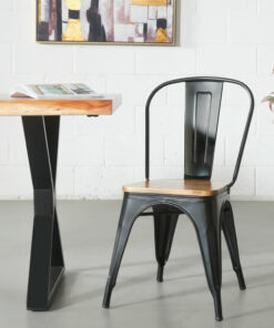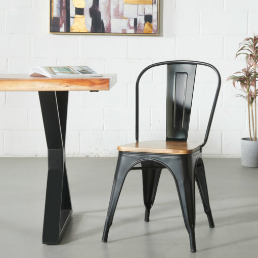 The Tony Tolix chair is an industrial style chair that is sleek, stylish and functional. This dining chair has a beautiful steel matte finish with a beautifully contrasting elm wooden seat that adds a warm rustic flair. The square base is supported by metal legs that taper down to plastic bottoms that will remove the risk of scratching your beautiful floor. This chair is a perfect addition to your dining room, kitchen, restaurant or café. No assembly required. Have a seat (and look good)!