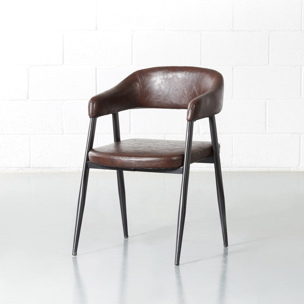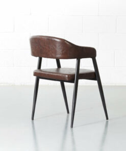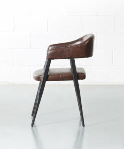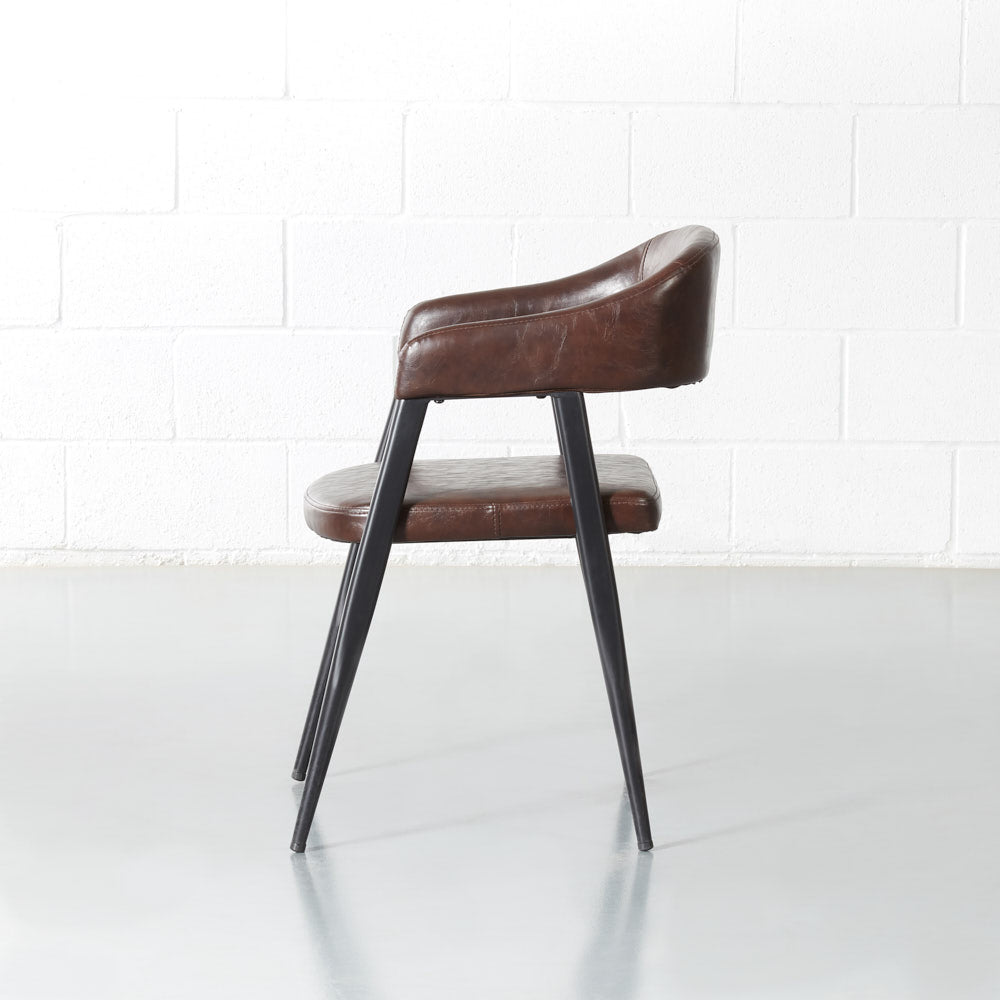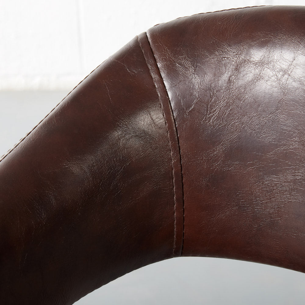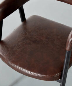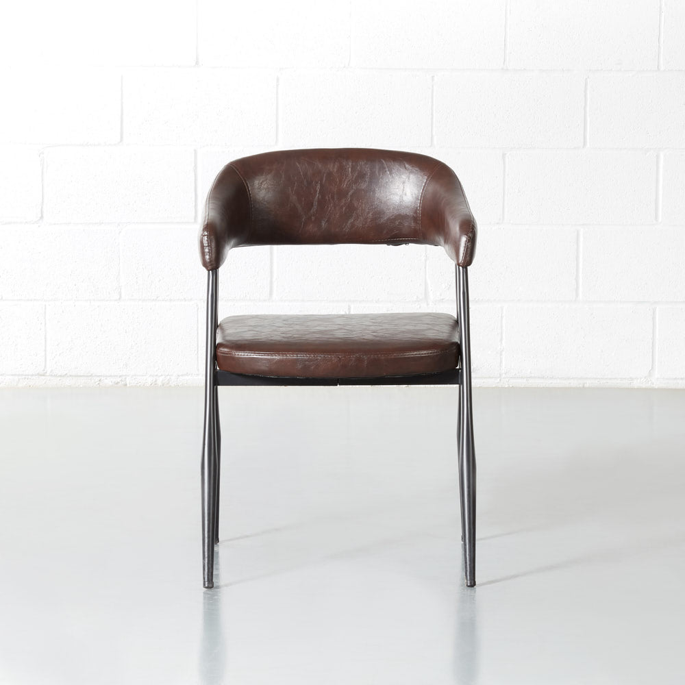 Smooth curves and beautiful vintage brown leather help this chair blend seamlessly into your decor. Lean back into the comfortable padded seat and backrest and enjoy the warmth this chair adds to your space.