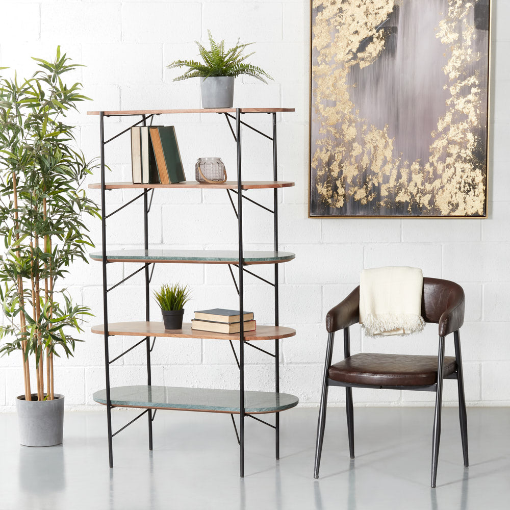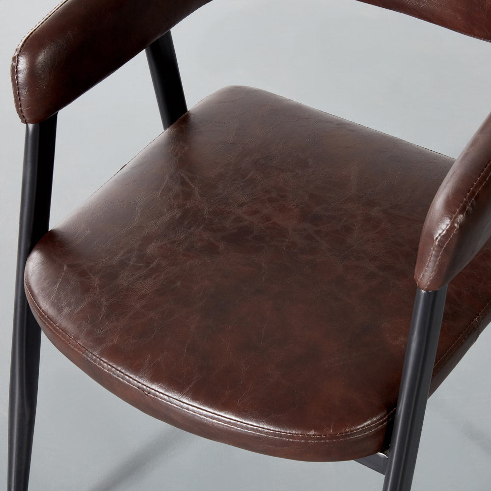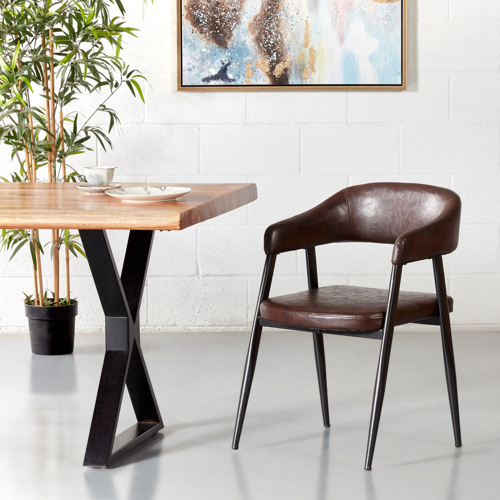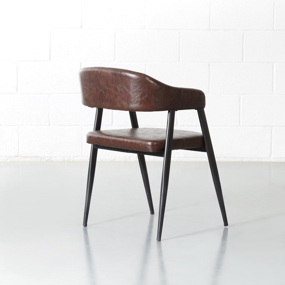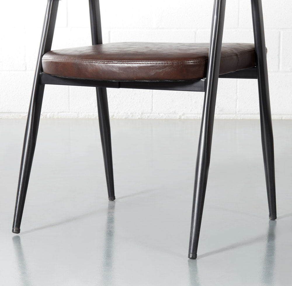 Smooth curves and beautiful vintage brown leather help this chair blend seamlessly into your decor. Lean back into the comfortable padded seat and backrest and enjoy the warmth this chair adds to your space.