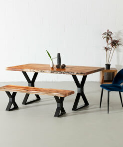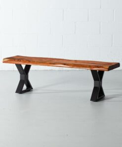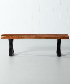 Acacia Live Edge Wood Bench with Black X-shaped Legs/Natural Color